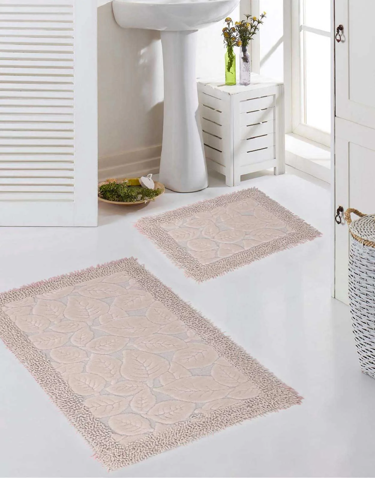 Das Badematten-Set im stilvollen Blätter-Design in Roser sorgt für einen eleganten Look in Ihrem Badezimmer. Die zwei hochwertigen Matten bieten eine rutschfeste Unterseite für sicheren Halt und maximalen Komfort. Sie sind pflegeleicht, waschbar und behalten auch nach mehreren Wäschen ihre Form und Farbe. Perfekt geeignet für den täglichen Gebrauch, verleihen sie Ihrem Bad eine gemütliche und stilvolle Atmosphäre.