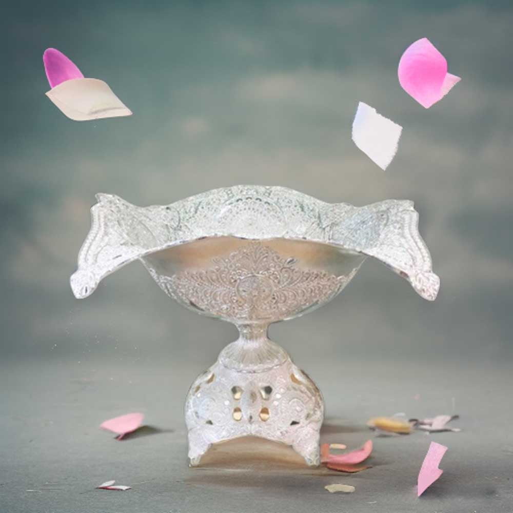 The Large Fruit Bowl Gondola With Silver Plated Flikari Base is made of high quality material to ensure a durable and long-lasting structure. The large fruit bowl is connected by a silver-plated Fligran gondola with a stable base, offering a complete design and a richer experience.