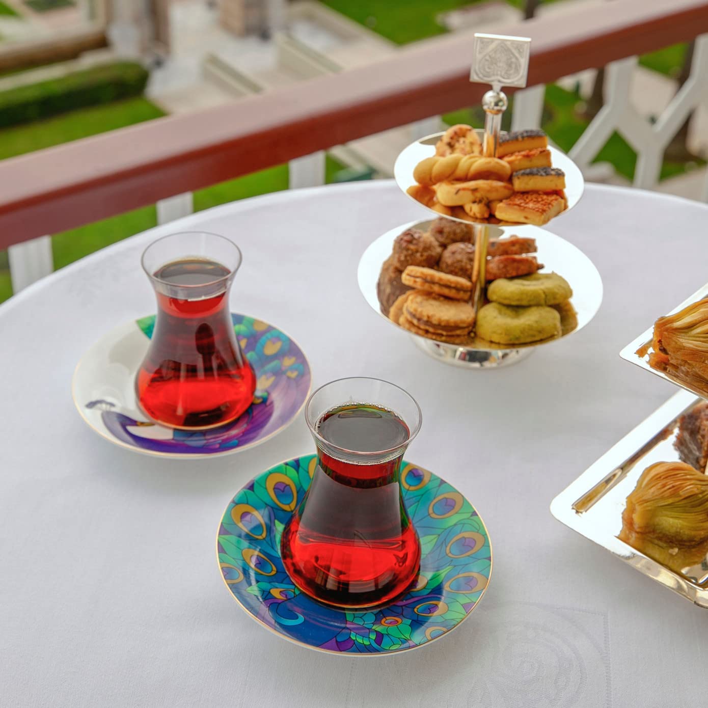 Karaca X Çırağan Palace Shop 12-piece tea service for 6 people, Fine Pearl, Turkish tea glasses with saucer, Cay Bardagi Seti, Turkish tea, Çırağan Palace