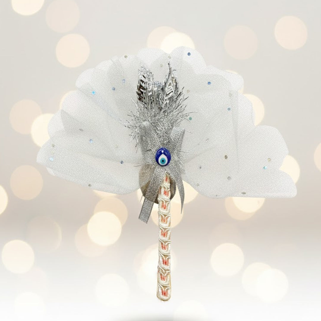 Das Design kombiniert glänzenden Tüll, silberne Ähren- und Blattverzierungen sowie ein traditionelles blaues Nazar Boncuk (Auge)Dank des Magneten auf der Rückseite lässt sich das Stück leicht an metallischen Oberflächen anbringen – ideal als Dekoration, Gastgeschenk oder Souvenir.