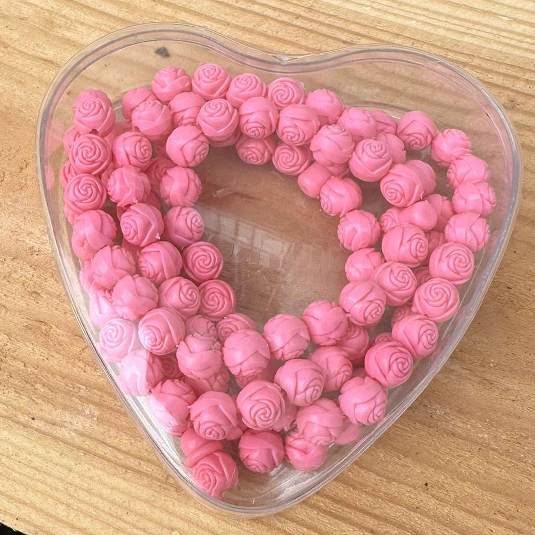 Chapelet parfumé à la rose dans une boîte cœur, rose