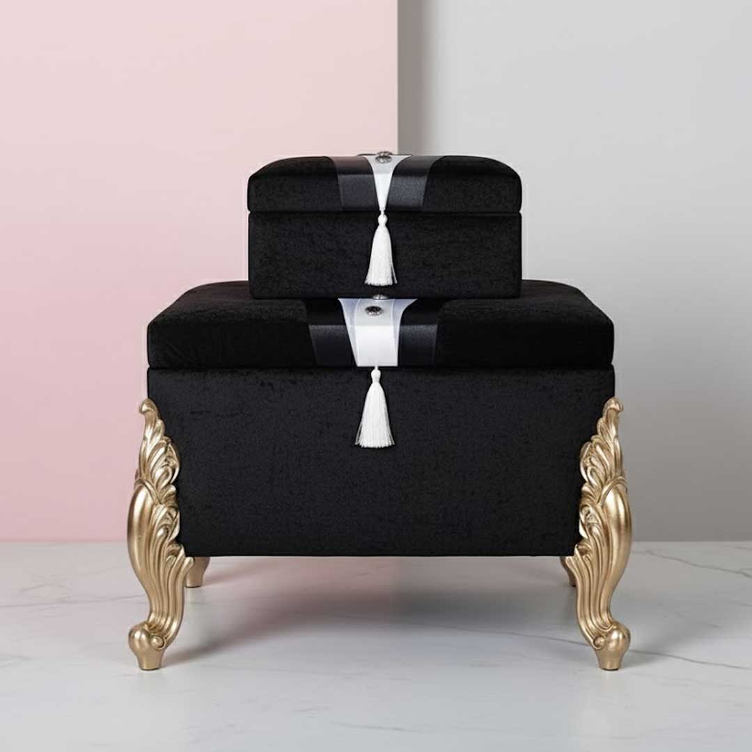 Coffre de mariage en velours figuré pour marié, ensemble de 2 coffres Ceyiz noirs
