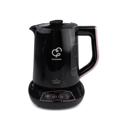 Avec notre théière et bouilloire parlante Karaca Çaysever 1700W or rose, un appareil électroménager pratique qui allie tradition et fonctionnalité moderne sera ajouté à votre cuisine. La version originale de la bouilloire a été étendue pour inclure la fonction vocale utile et une théière. Avec cette théière, vous choisissez l'une des nouveautés les plus populaires pour la maison. Préparez le thé parfait en seulement 15 minutes. La machine à thé vous informe via la fonction vocale lorsque l'eau chaude est aromatisée de manière optimale. Grâce à la fonction de réchauffement intégrée, le thé aux fruits ou les tisanes fraîchement infusés restent au chaud. Un voyant lumineux signale après 40 minutes si le thé dans la théière est rassis. Comme la bouilloire est sans BPA, elle convient bien sûr également