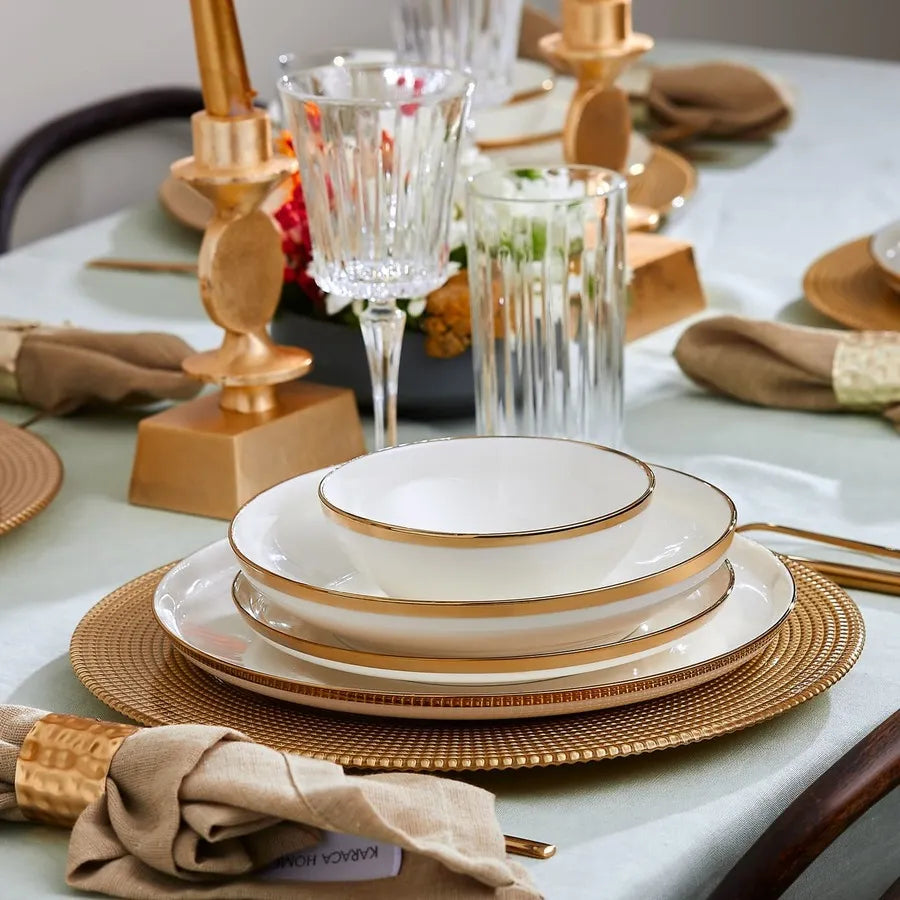 L'ensemble de vaisselle Karaca Eclipse Gold 57 pièces pour 12 personnes est un choix élégant pour n'importe quelle table.