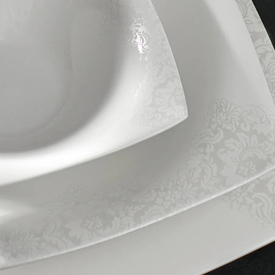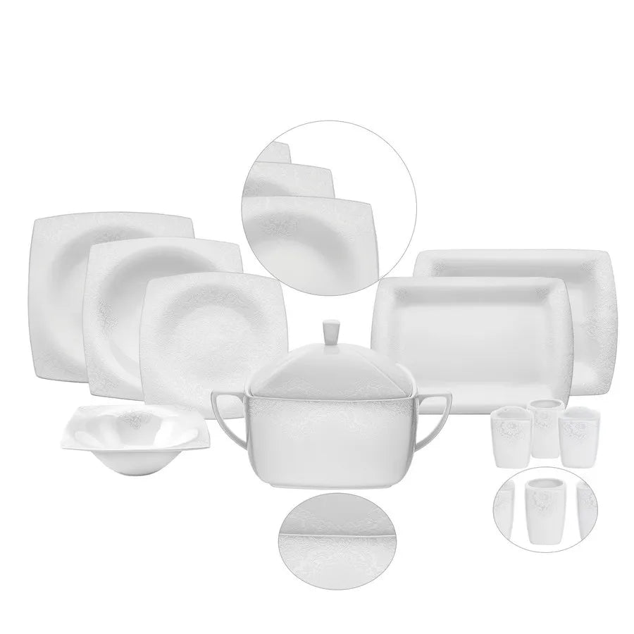 Karaca Fine Pearl Service de table carré Helen 62 pièces pour 12 personnes