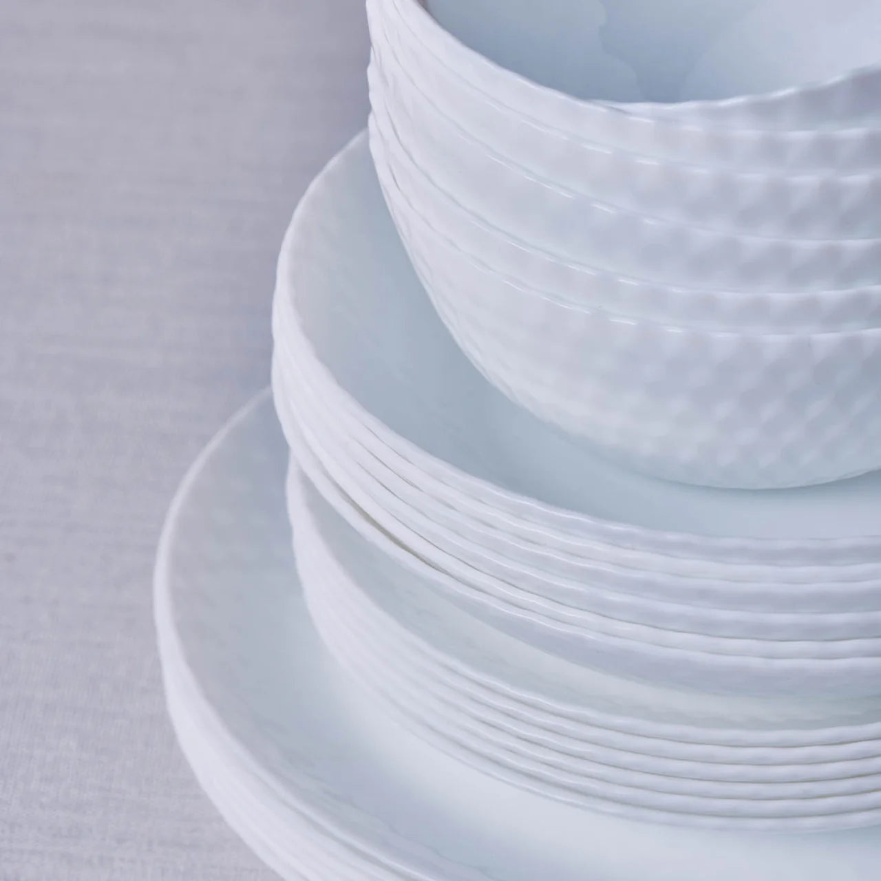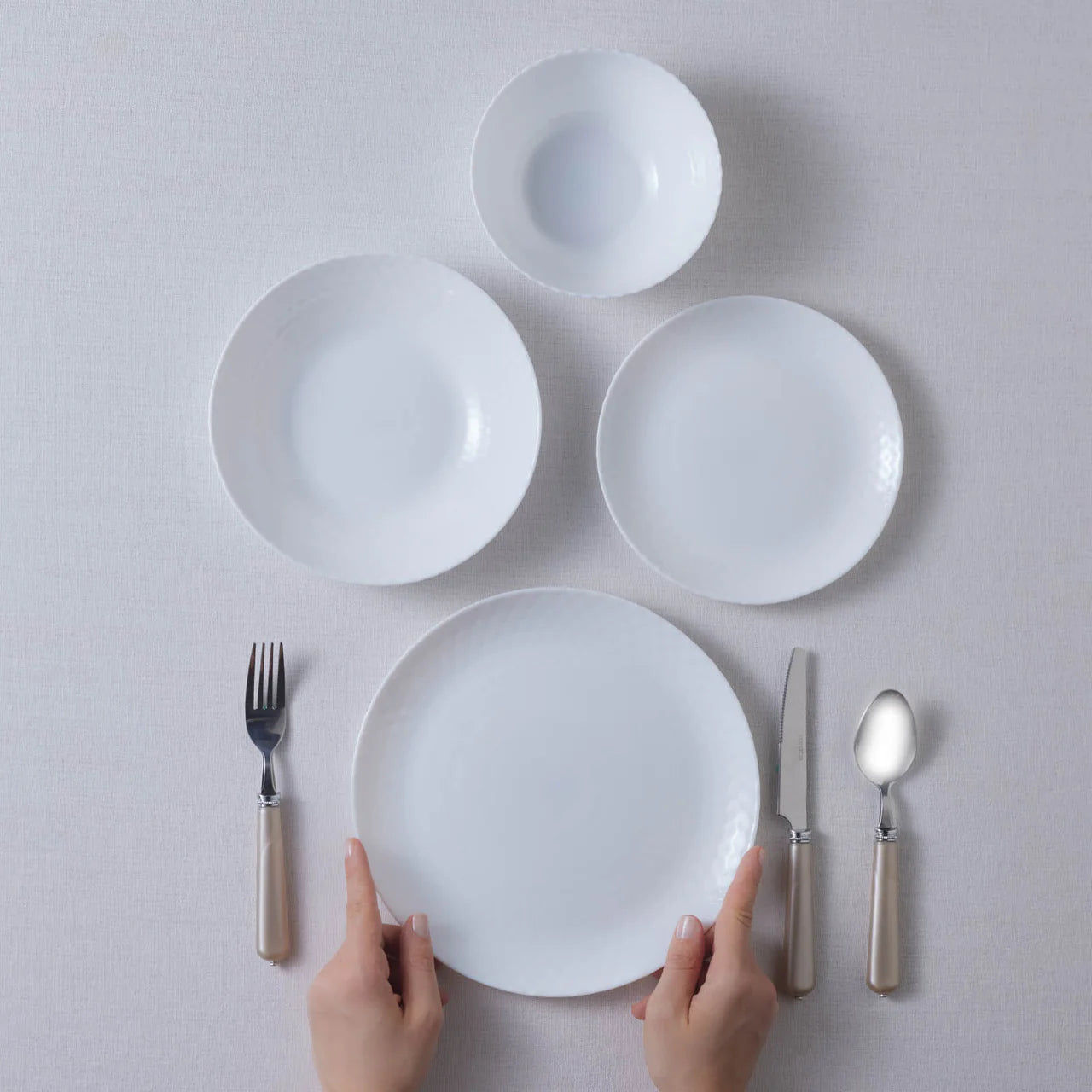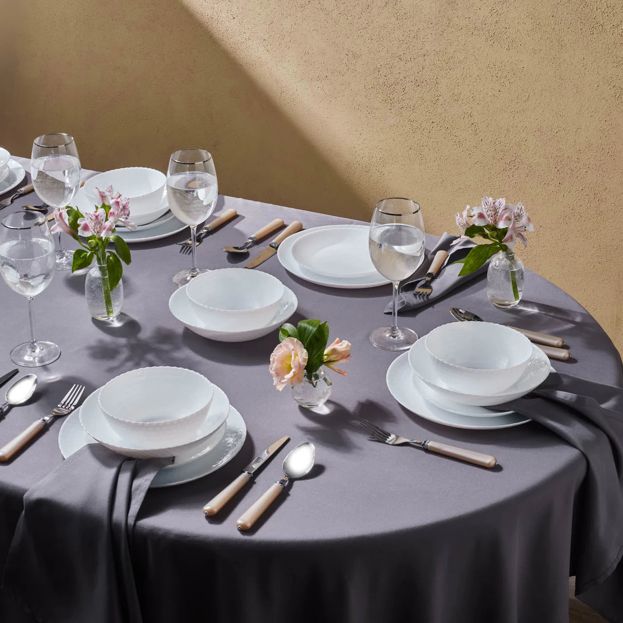 Das White Diamond Opal Tafelservice verleiht Ihrem gedeckten Tisch eine elegante Note. Gefertigt aus hochwertigem Opalglas, besticht dieses 24-teilige Set durch seine strahlend weisse Farbe und sein modernes Design. Es ist spülmaschinenfest und somit ideal für den täglichen Gebrauch sowie besondere Anlässe geeignet.