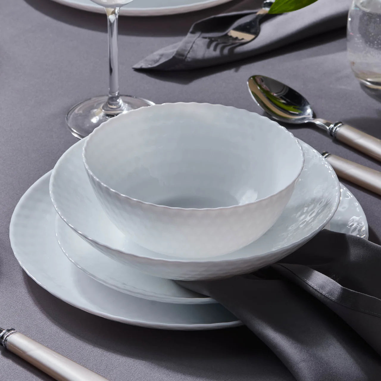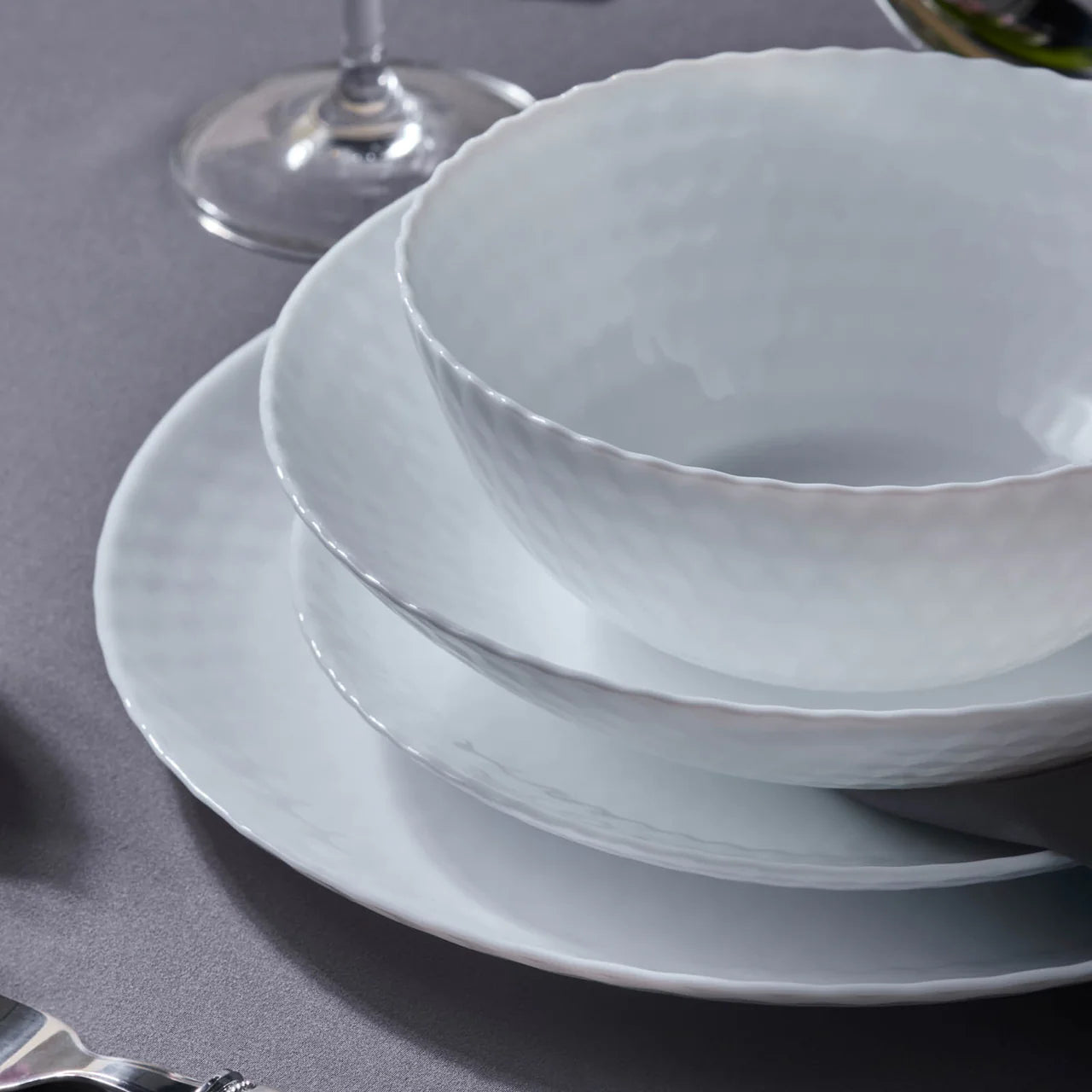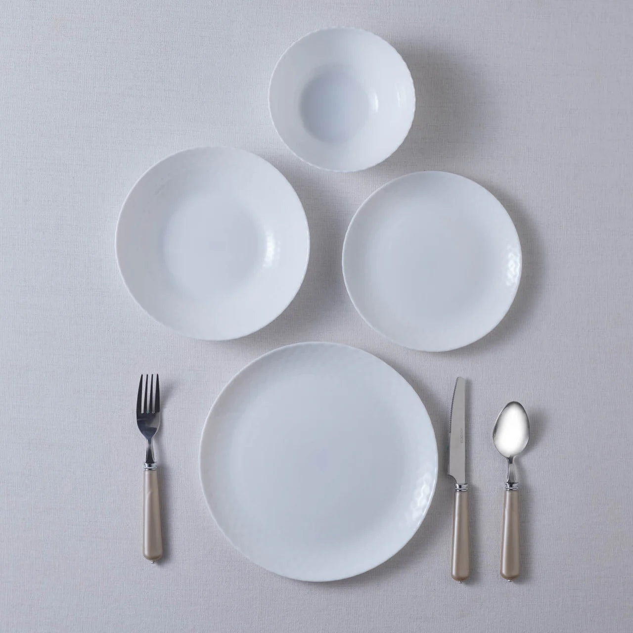 Das White Diamond Opal Tafelservice verleiht Ihrem gedeckten Tisch eine elegante Note. Gefertigt aus hochwertigem Opalglas, besticht dieses 24-teilige Set durch seine strahlend weisse Farbe und sein modernes Design. Es ist spülmaschinenfest und somit ideal für den täglichen Gebrauch sowie besondere Anlässe geeignet.