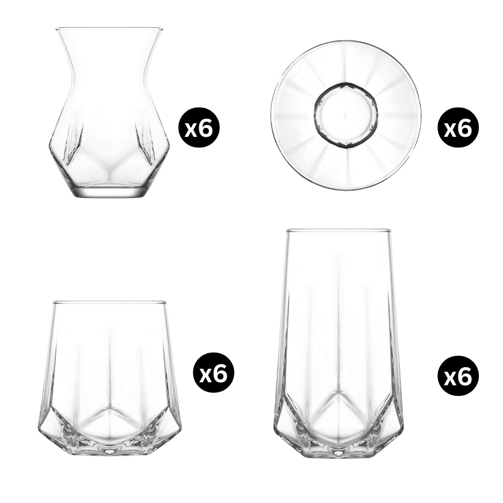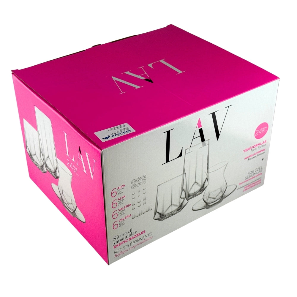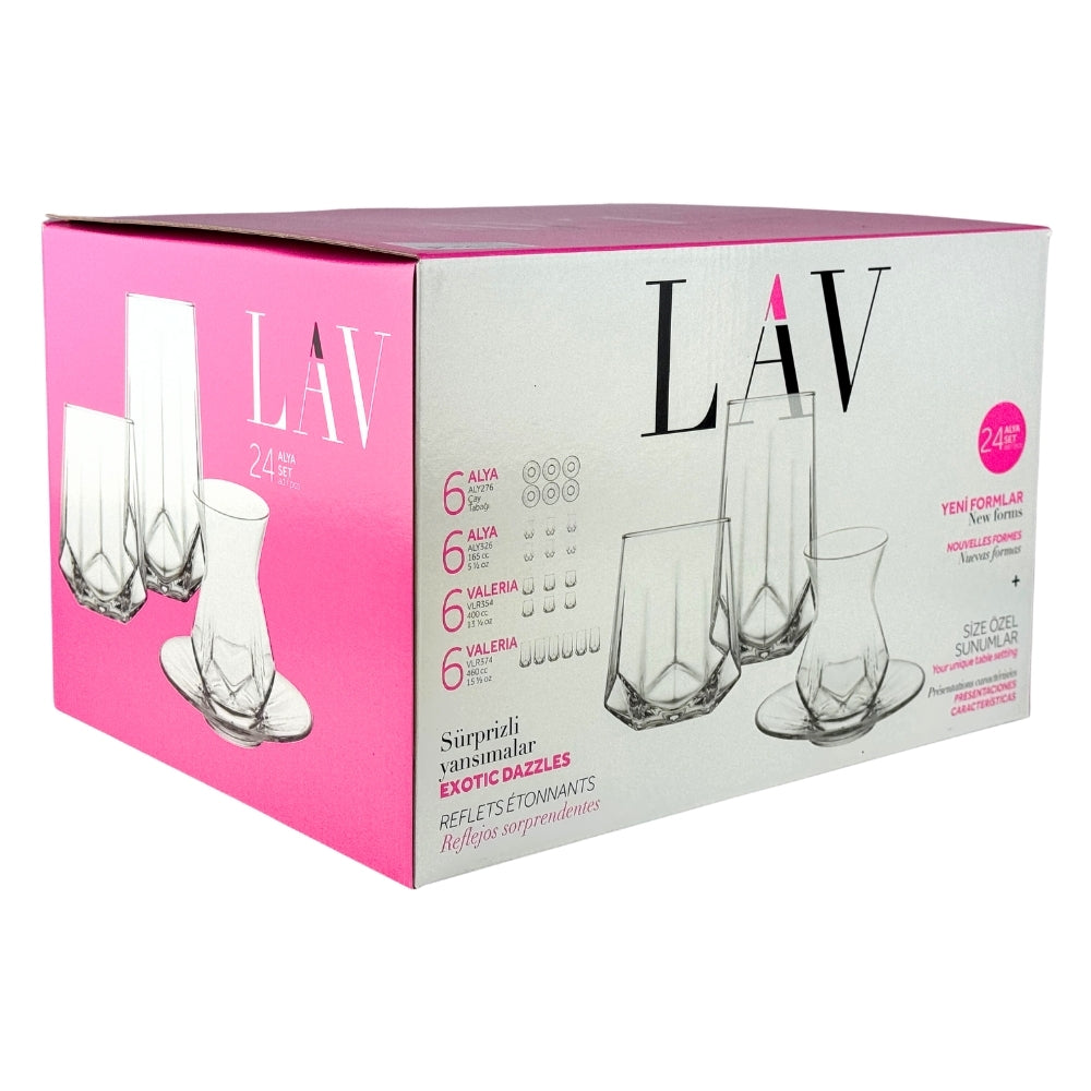 LAV Gläser Set Alya S2 – 24-teiliges Gläser Set mit Valeria Trink- und Whiskygläsern sowie Alya Teegläsern