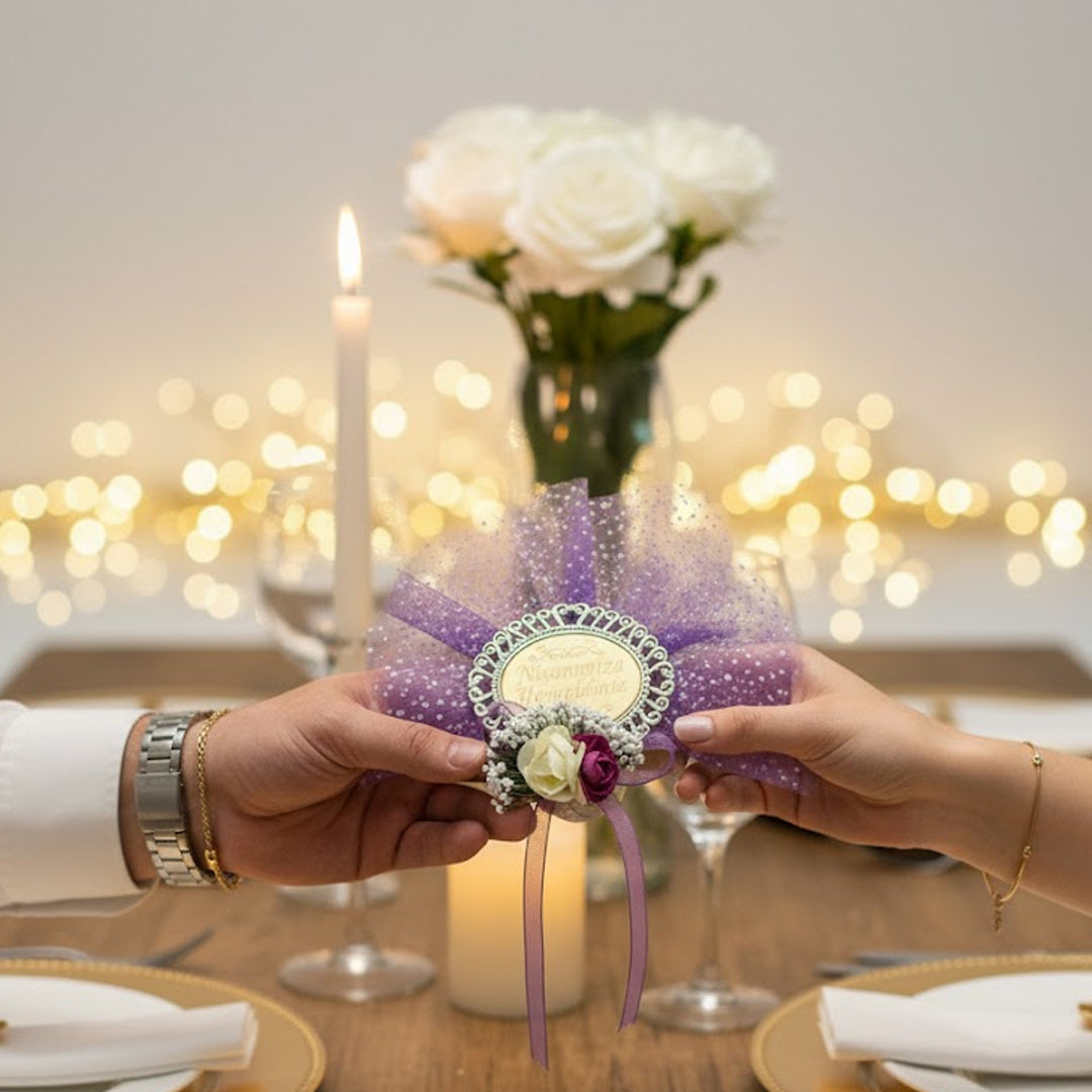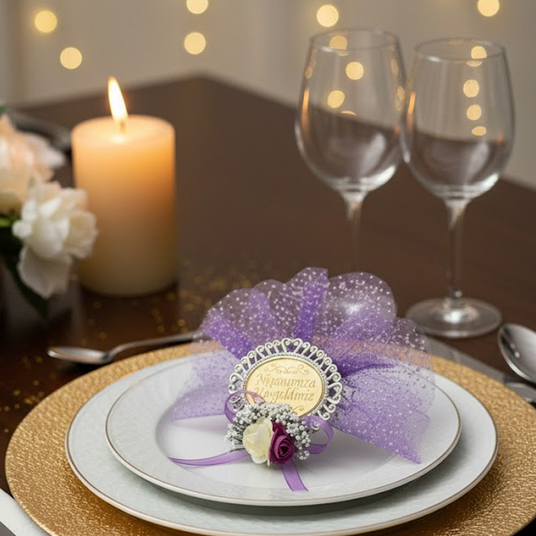 Dieses elegante magnetische Nişan-Andenken mit der Aufschrift “Nişanımıza Hoşgeldiniz” (Willkommen zu unserer Verlobung) ist ein wunderschönes Detail für Ihren besonderen Tag.