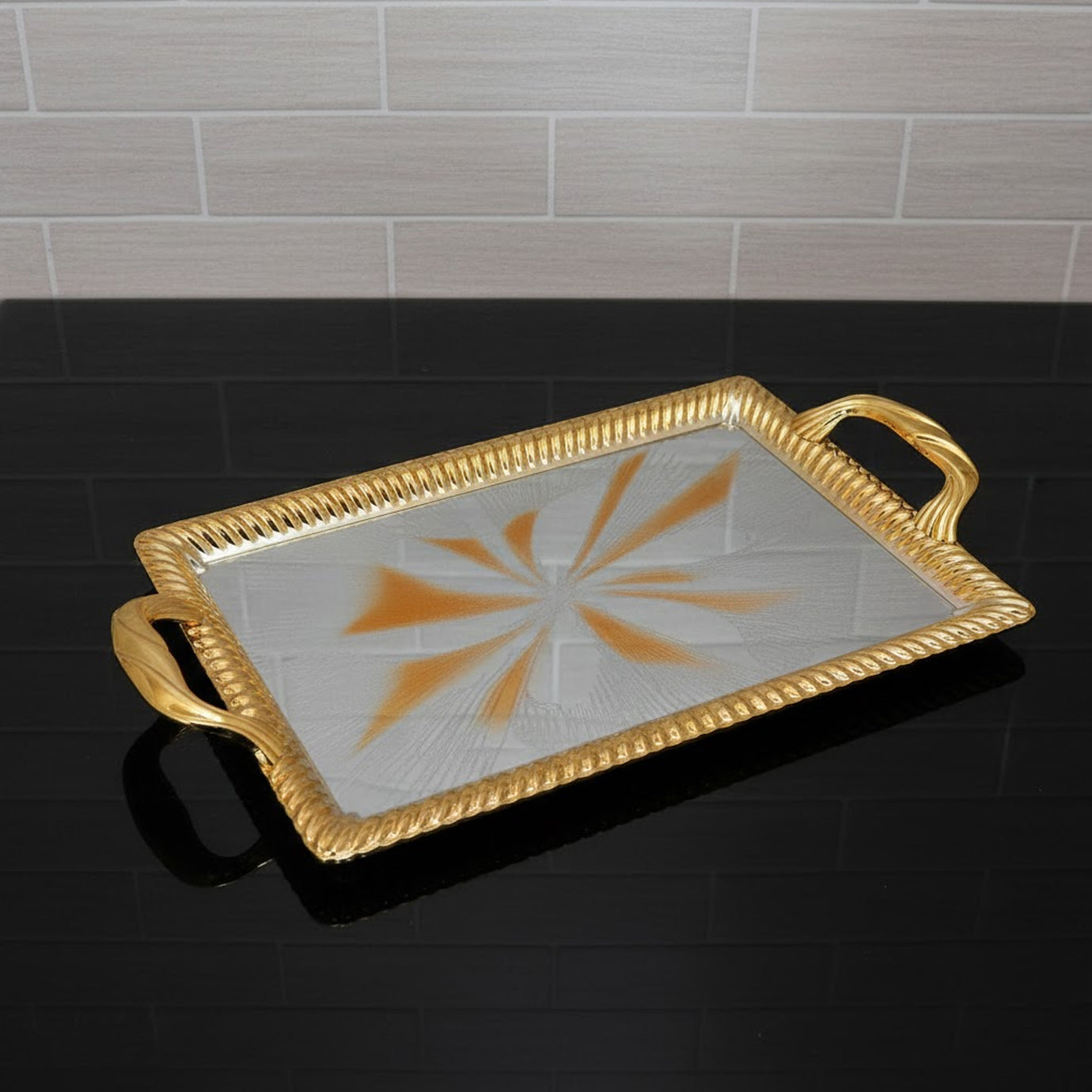 Profitez de la beauté du Gilded Masterpiece : un plateau rectangulaire de taille moyenne avec un éclat élégant. Ce design luxueux est un ajout élégant à votre table.