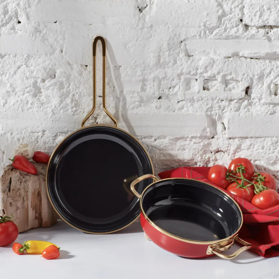 Karaca Retro Emaille Pfanne und Servierpfanne im Set Anthrazit