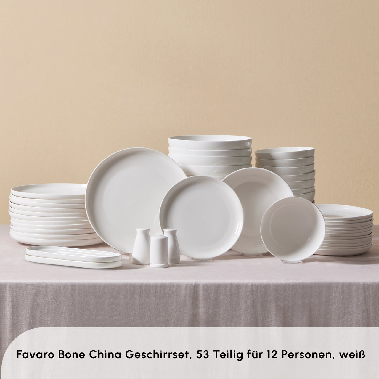 Karaca Streamline Favaro 53-teiliges Geschirrset – Weiss | Für 12 Personen