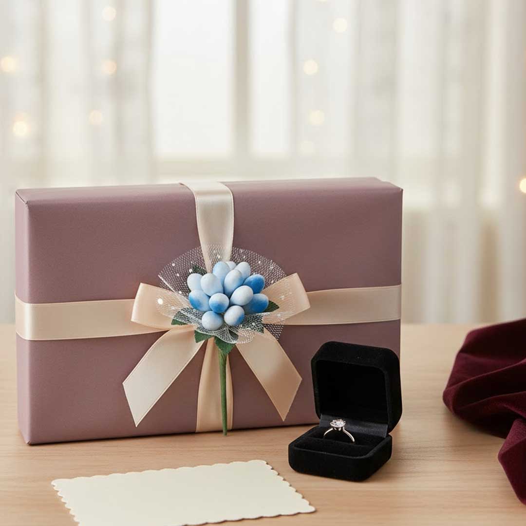 Mit feinem Tüllüberzug und grünen Blättern gestaltet, verleiht diese Blume jedem Anlass eine elegante und festliche Note. Ideal als Akzent für Geschenkverpackungen, Tischdekorationen oder florale Arrangements.