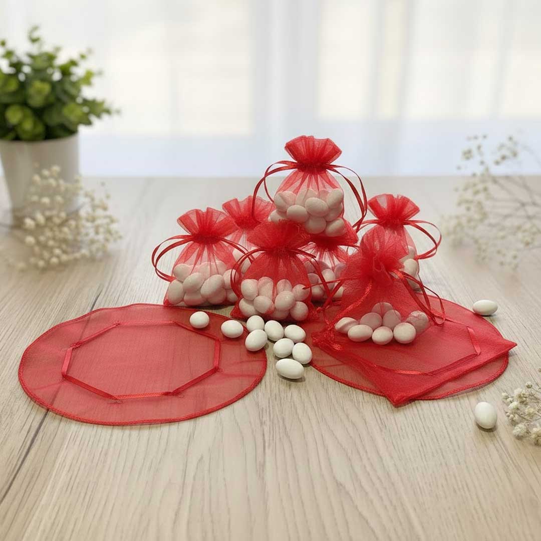 50 Stück Geschenkorganza-Beutel rot 24 cm, rund, Mandelzucker-Beutel, Mini-Organza-Beutel