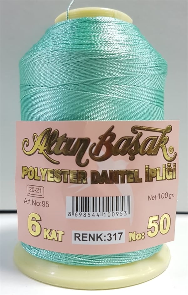 Altınbaşak Polyester-Spitzengarn 100 g, 6-fach, Nr. 50, Farbe: 317 Blau