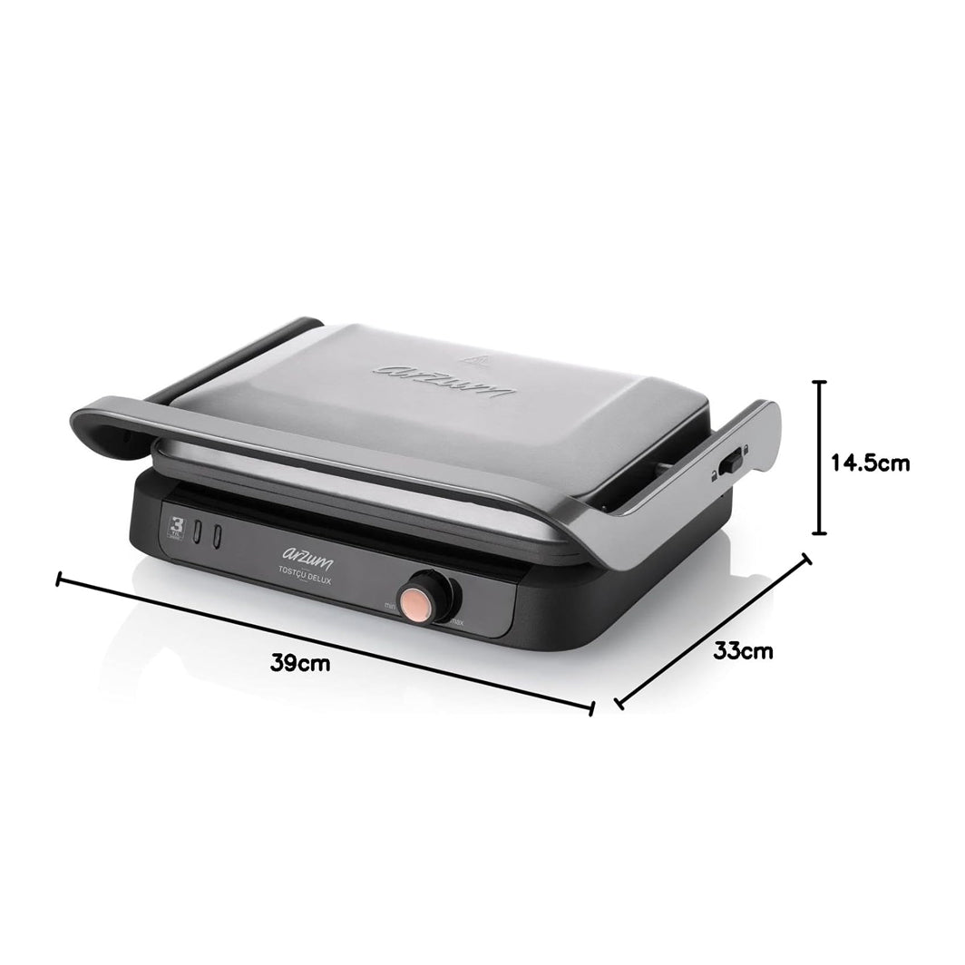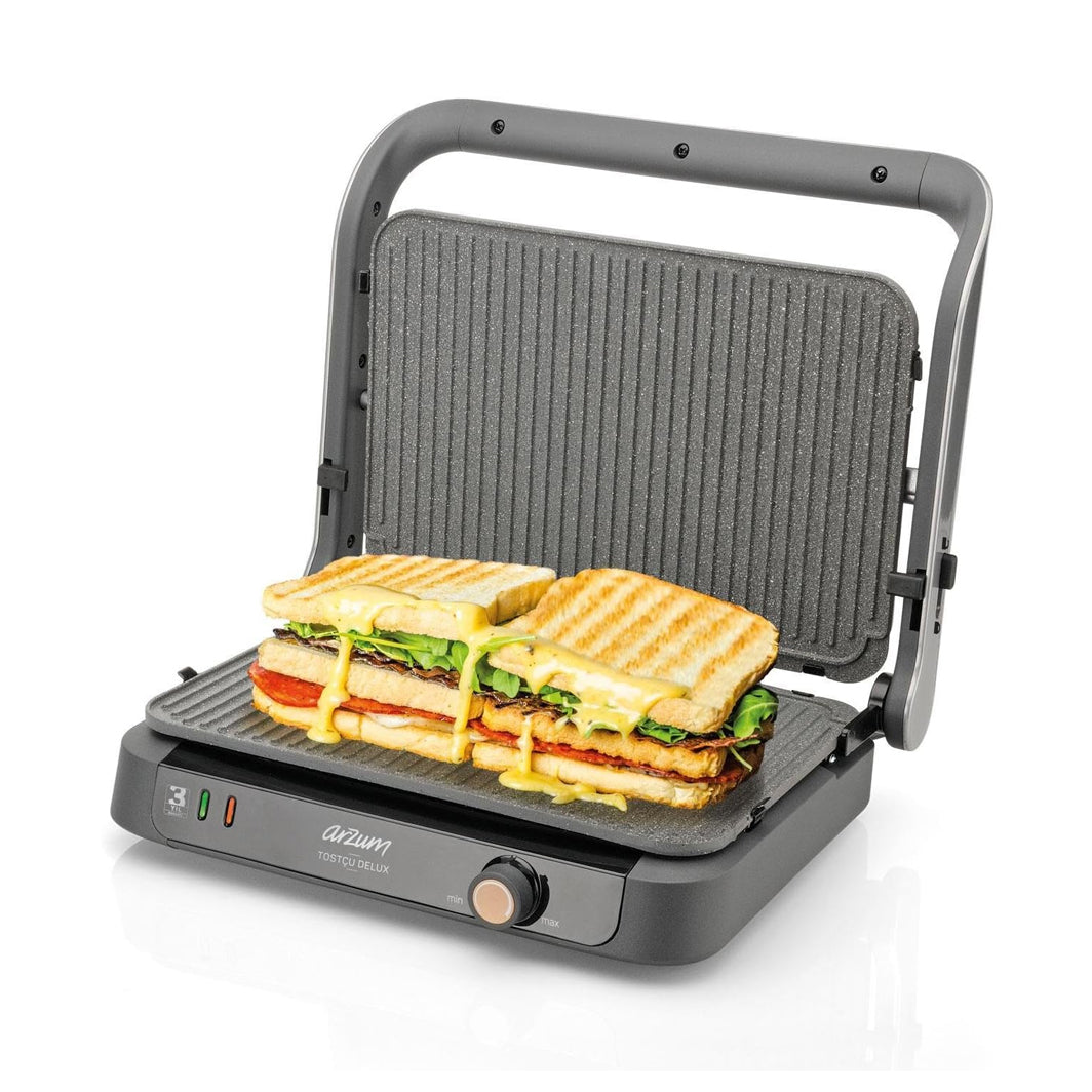 Mit dem Arzum Kontaktgrill und Sandwichtoaster (Modell AR 2001) bringst Du Vielseitigkeit in Deine Küche. Ob saftige Grillgerichte, knusprige Sandwiches oder perfekt gebräunte Paninis – dieses multifunktionale Gerät vereint Leistung, Stil und Benutzerfreundlichkeit in einem kompakten Design.