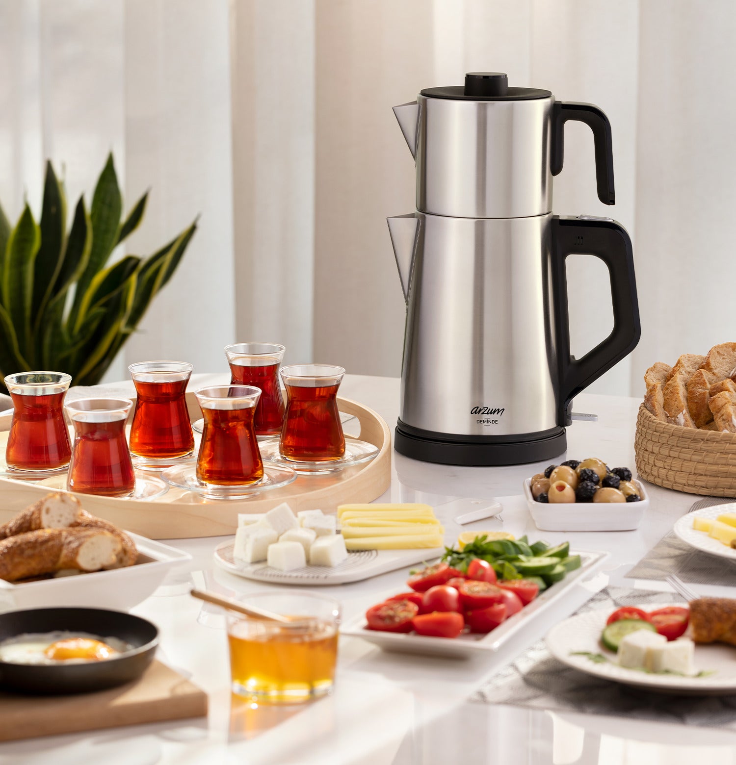Arzum Deminde AR3129 Teemaschine, Hochwertige teekocher elektrisch, entfernbarer Teefilter aus Edelstahl, Teekocher, Teebereiter, Wasserkocher mit Teesieb Abschaltautomatik und Warmhaltefunktion