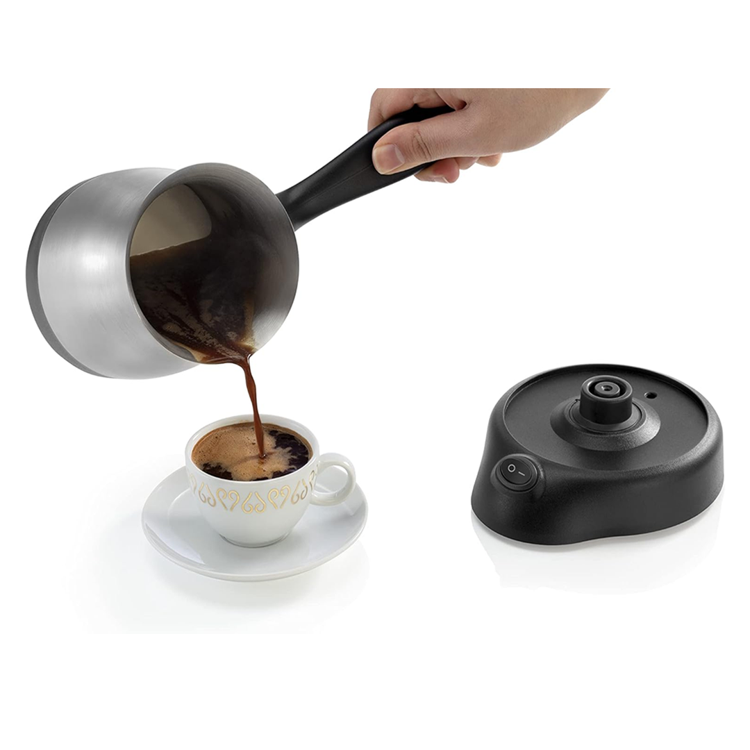 Die Optimum Kaffeemaschine bietet authentischen türkischen Kaffeegenuss mit modernster Technik. Mit einer Kapazität von bis zu 4 Tassen (200 ml) ermöglicht sie die Zubereitung von aromatischem Kaffee mit perfekter Crema. Die 360° drehbare Kanne und die kabellose Nutzung sorgen für höchsten Bedienkomfort. Das elegante Edelstahl-Design passt in jede Küche und überzeugt durch Langlebigkeit.