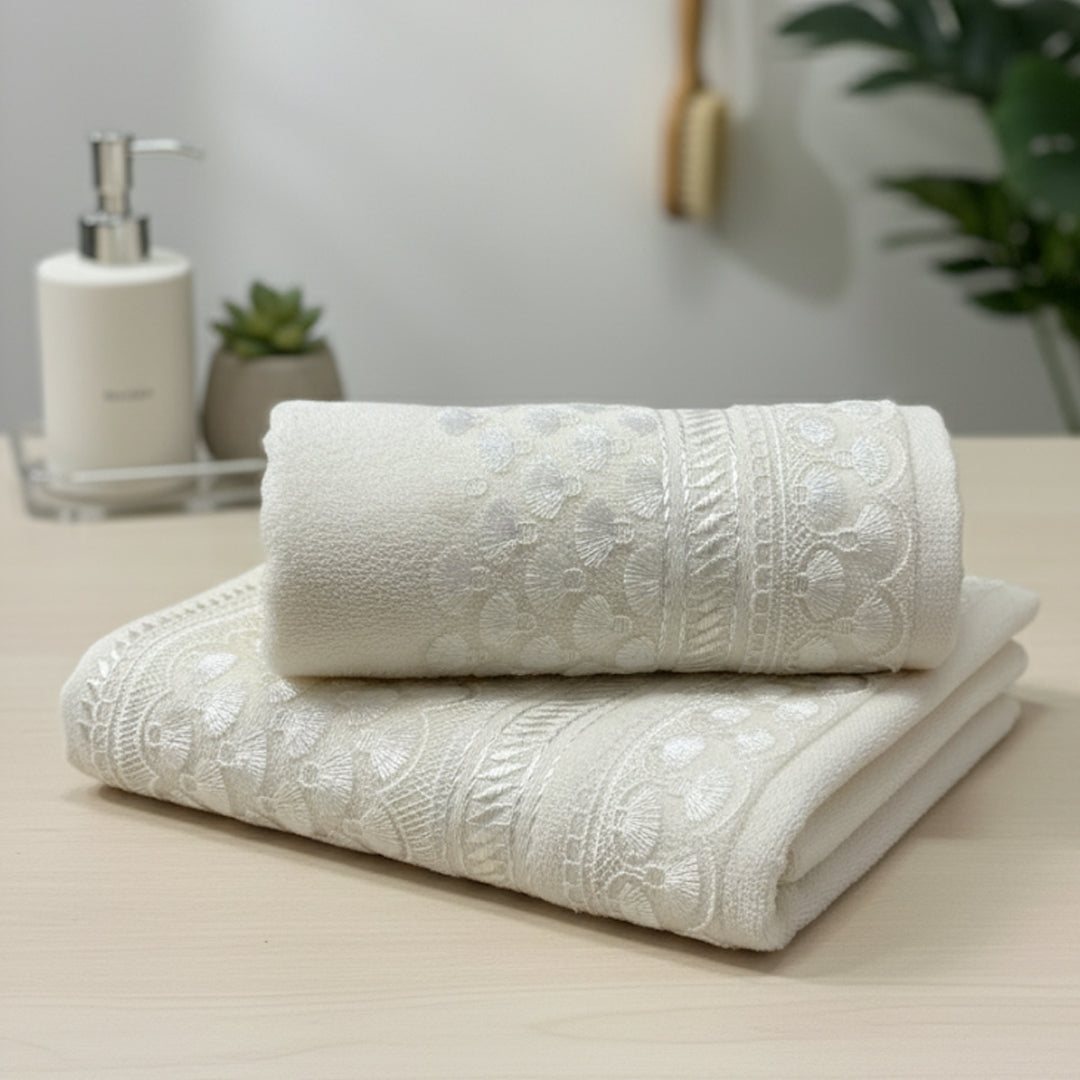 Langlebige Schönheit: Dank der hochwertigen Webart und der robusten Polyester-Stickerei behält das Handtuch seine Eleganz auch nach vielen Wäschen bei.