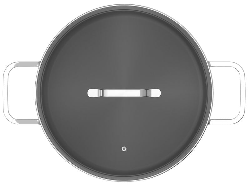 Die BergHOFF HELIX 26 ist ein hochwertiger Topf aus recyceltem Edelstahl mit einem gekapselten Boden, der die Wärme effizient leitet. Der Topf ist ofenfest bis zu 250 °C und kratzfest. Er ist für alle Herdarten geeignet, einschliesslich Induktion, und verfügt über einen stilvollen, schwarz getönten Glasdeckel mit integriertem Entlüftungsloch.