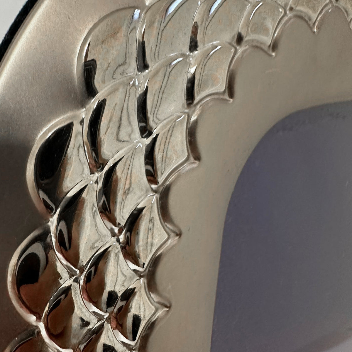 Versilberter, lackierter Fotorahmen mit einer straffen Leiste. Für Fotos im Format 15 x 20 cm.