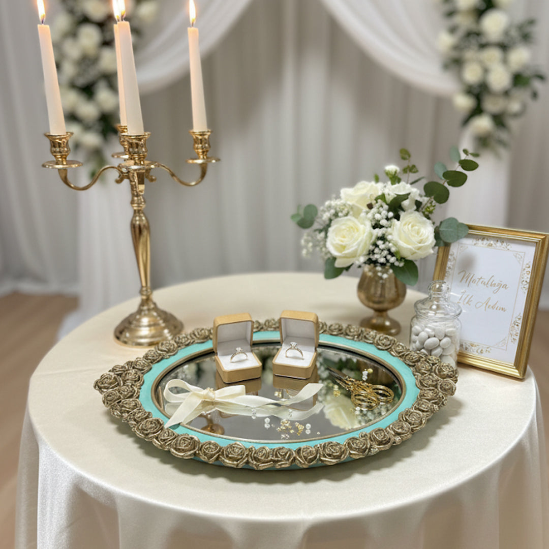 Dieses elegante Verlobungs- und Serviertablett ist ein wunderschönes Accessoire für besondere Anlässe wie Verlobung, Hochzeit oder Henna-Abend.
