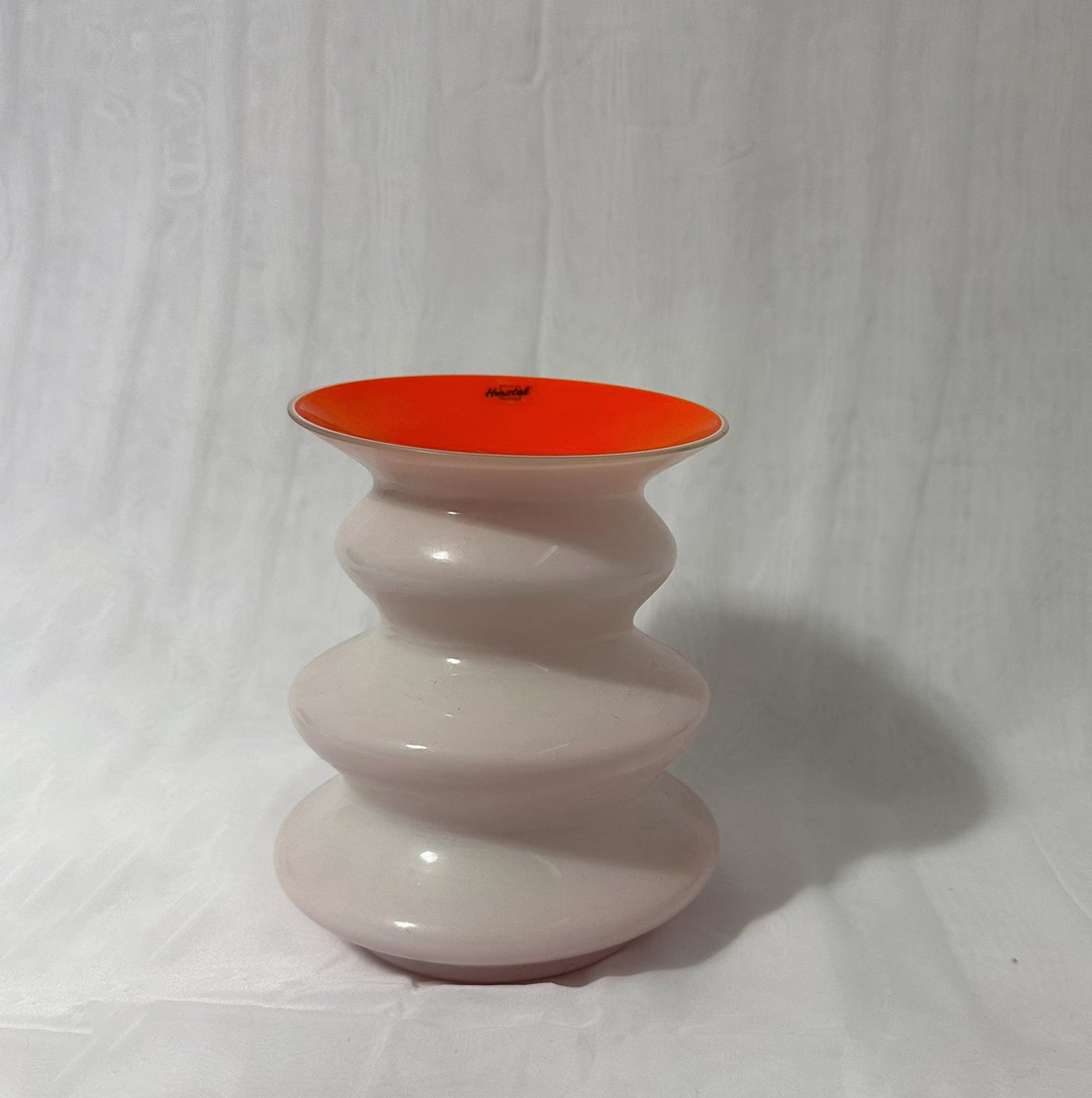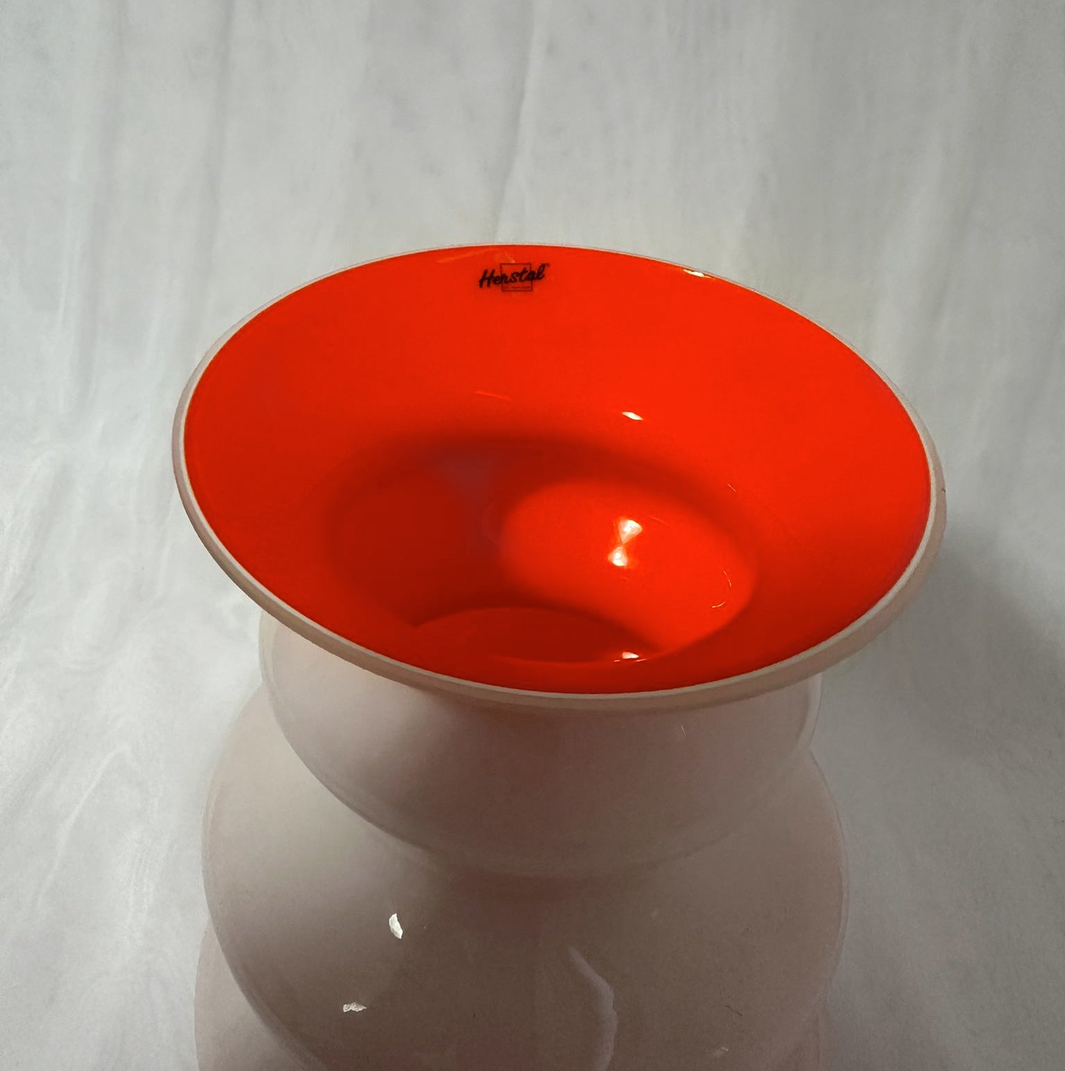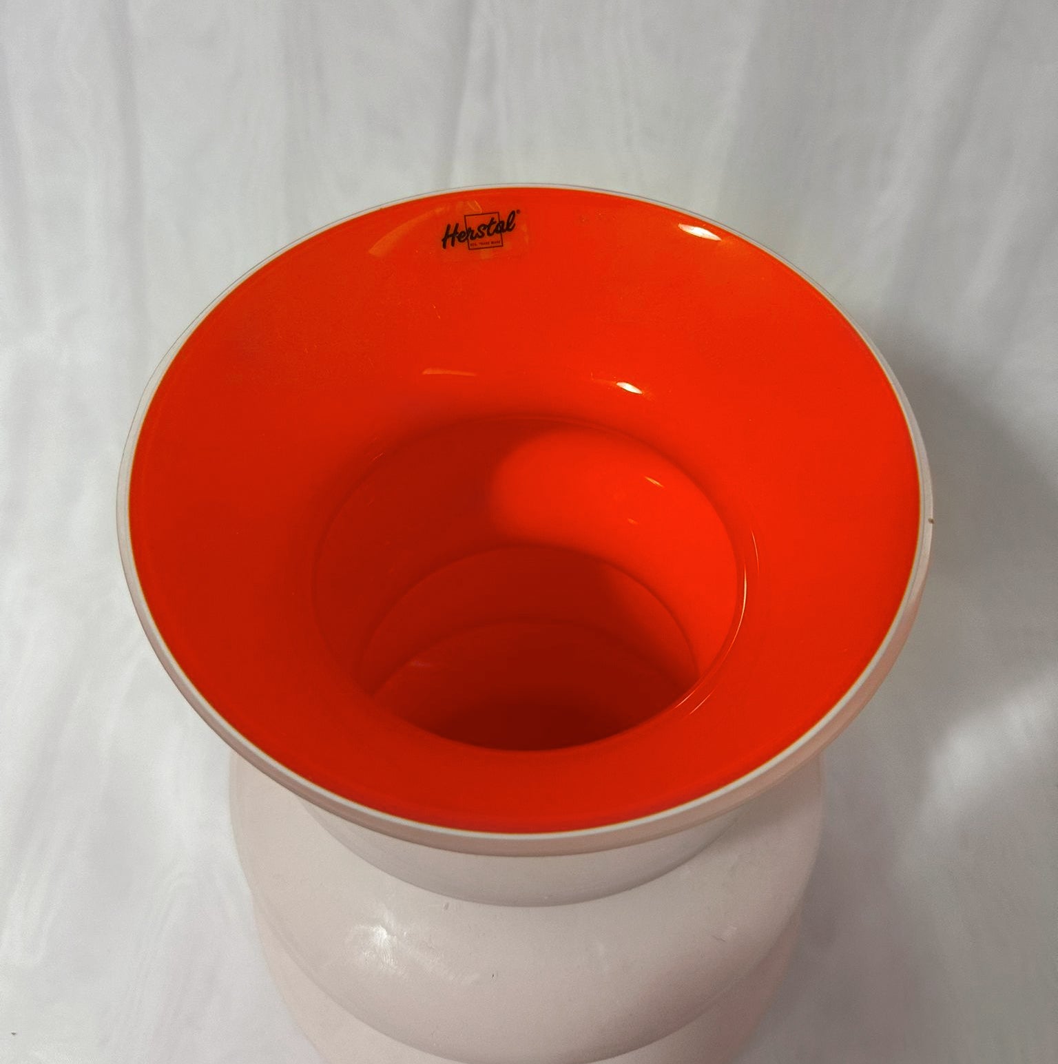 Die Herstal Neya Vase besticht durch ihr modernes, harmonisches Design und ihre hochwertige Verarbeitung. Außen in elegantem Weiß gehalten und innen in einem warmen, leuchtenden Orange, erzeugt sie einen stilvollen Farbkontrast, der jede Einrichtung aufwertet.