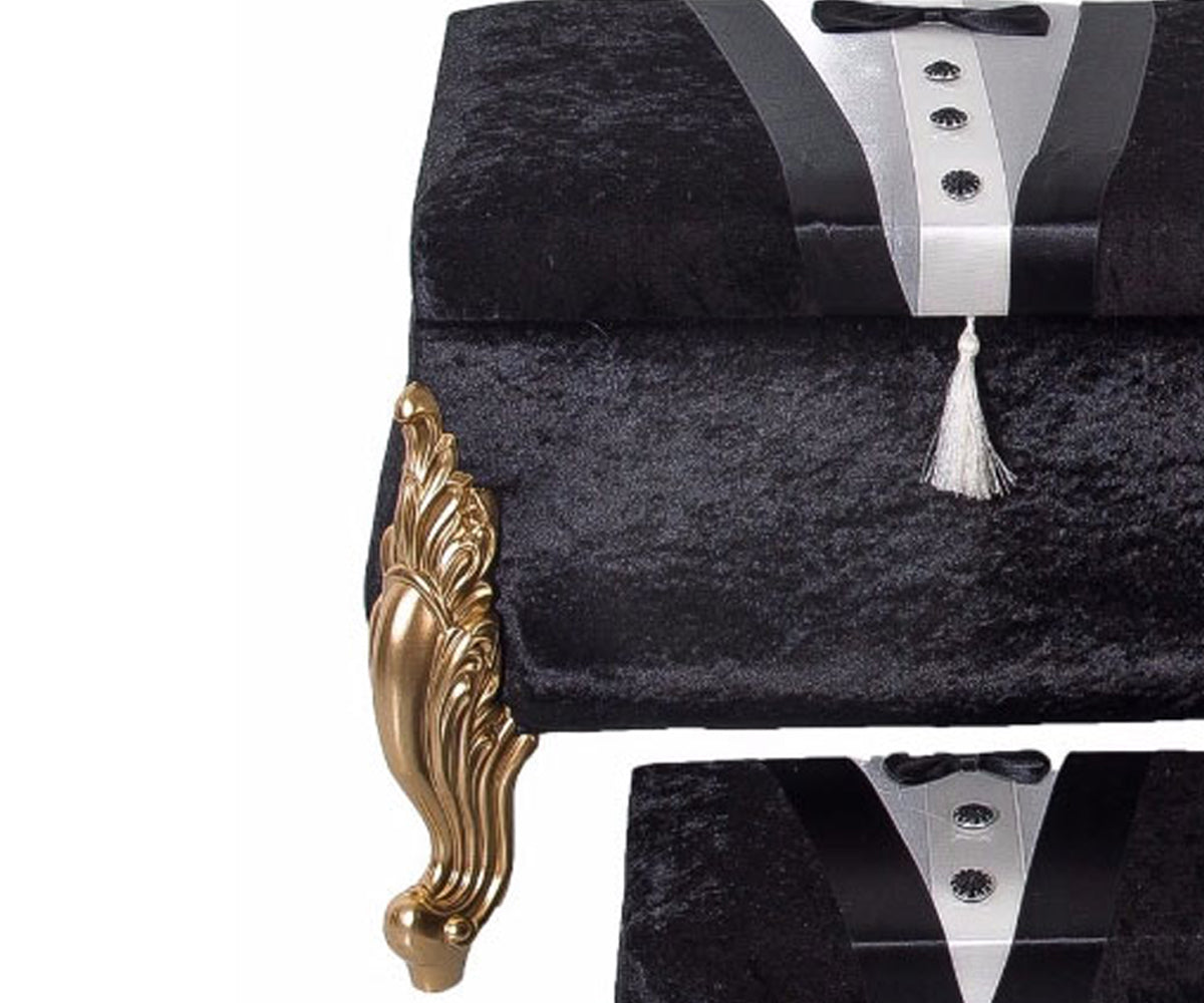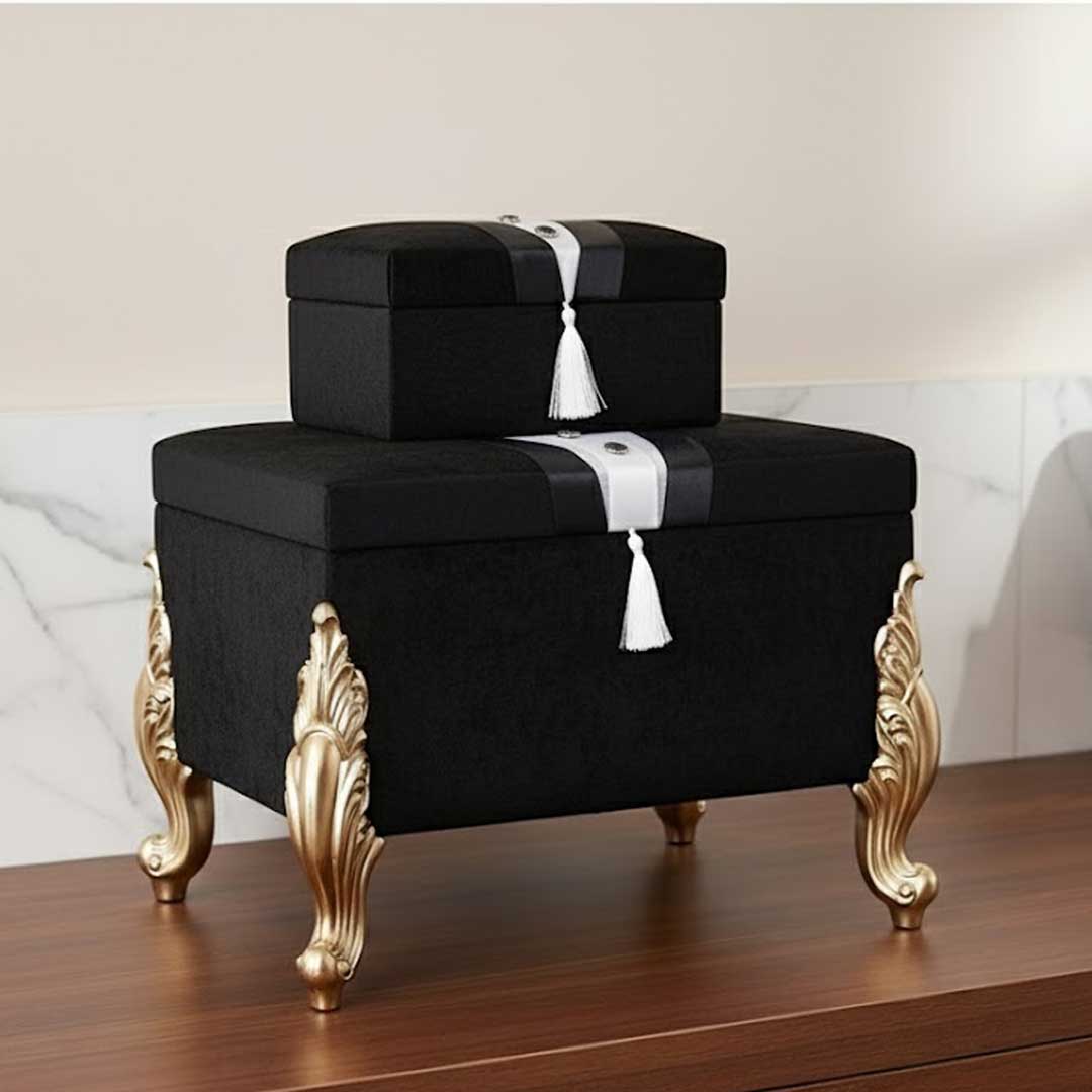 Hochzeitstruhe Bräutigam Figured Samt Velvet 2er Ceyiz Truhe Schwarz