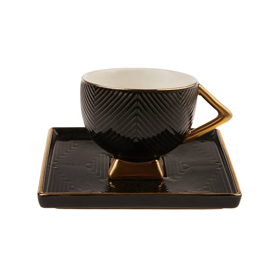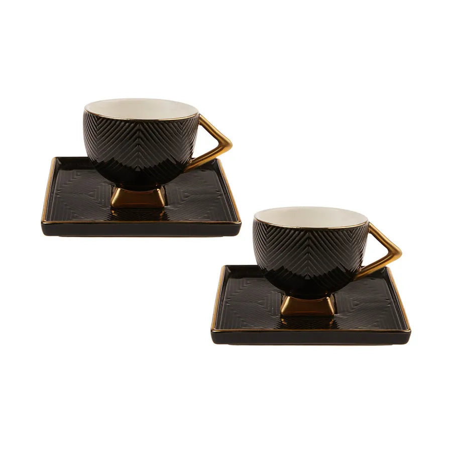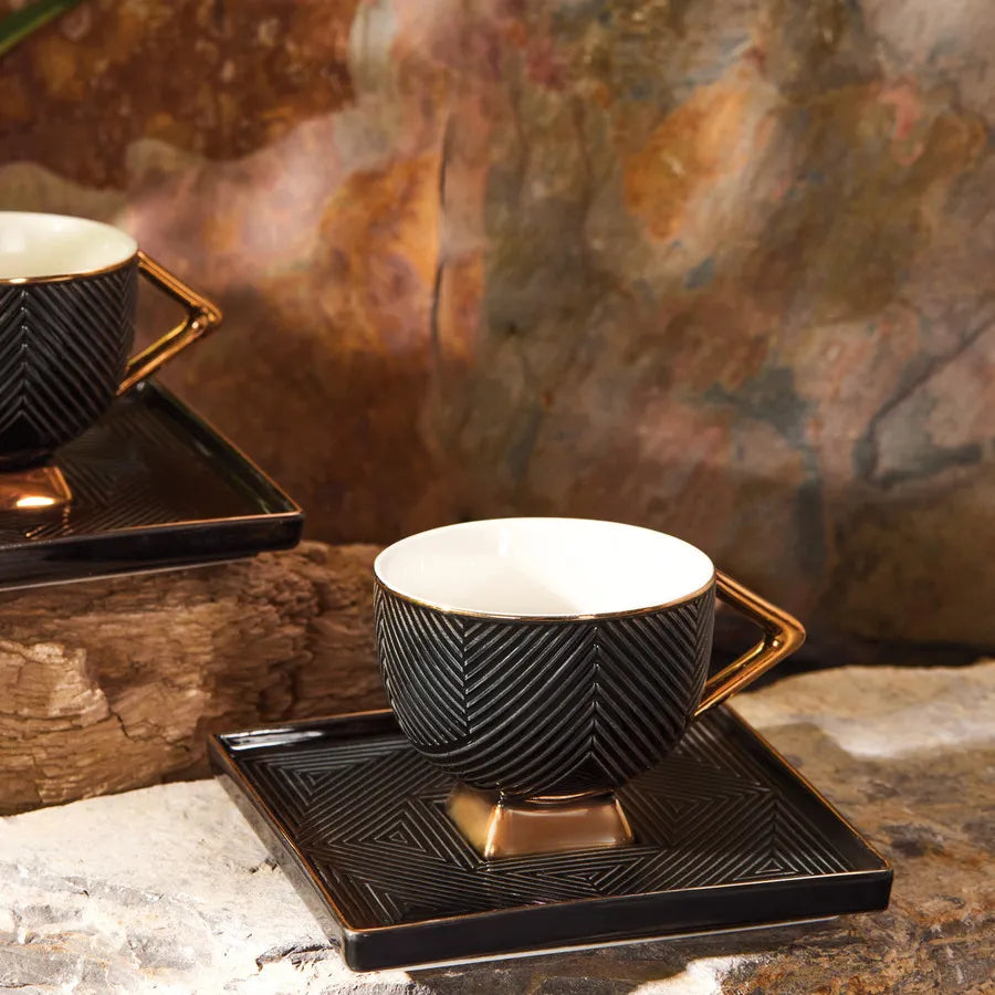Karaca Art Deco Black Schwarzes 2 Personen Espressotassen Set