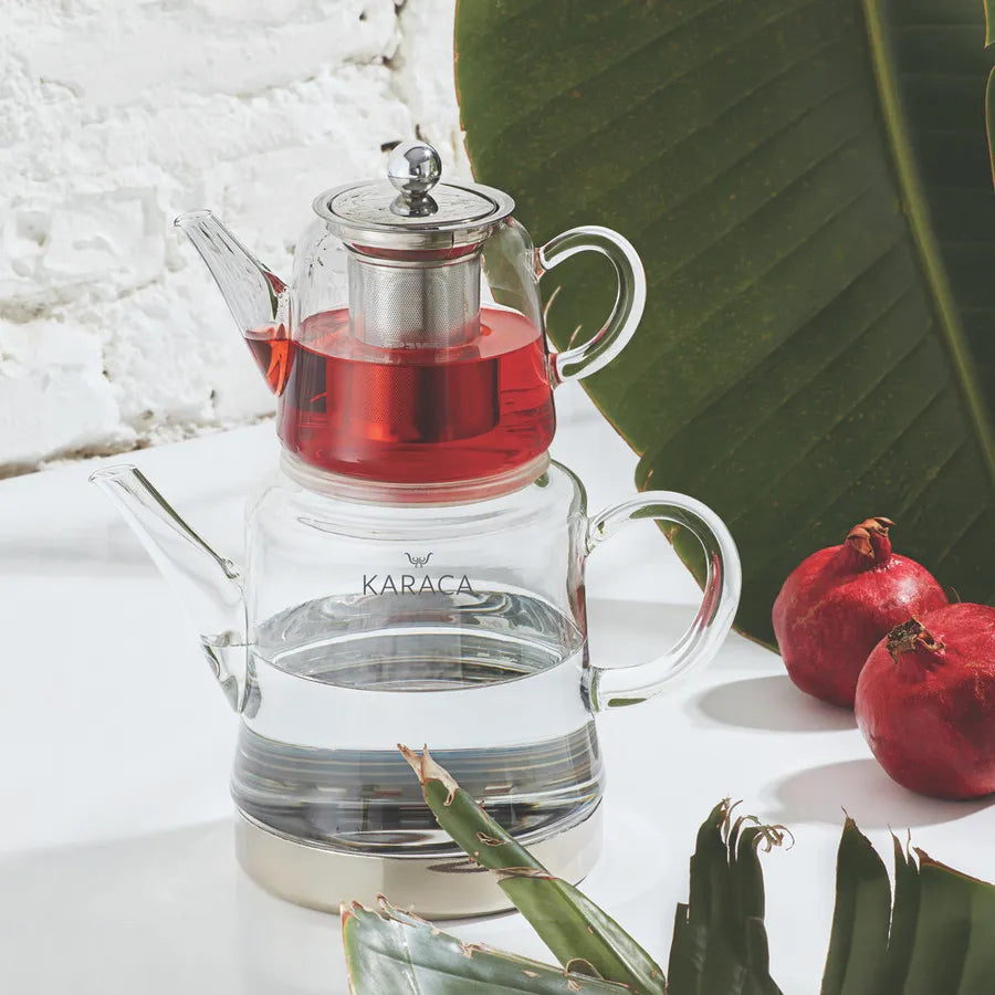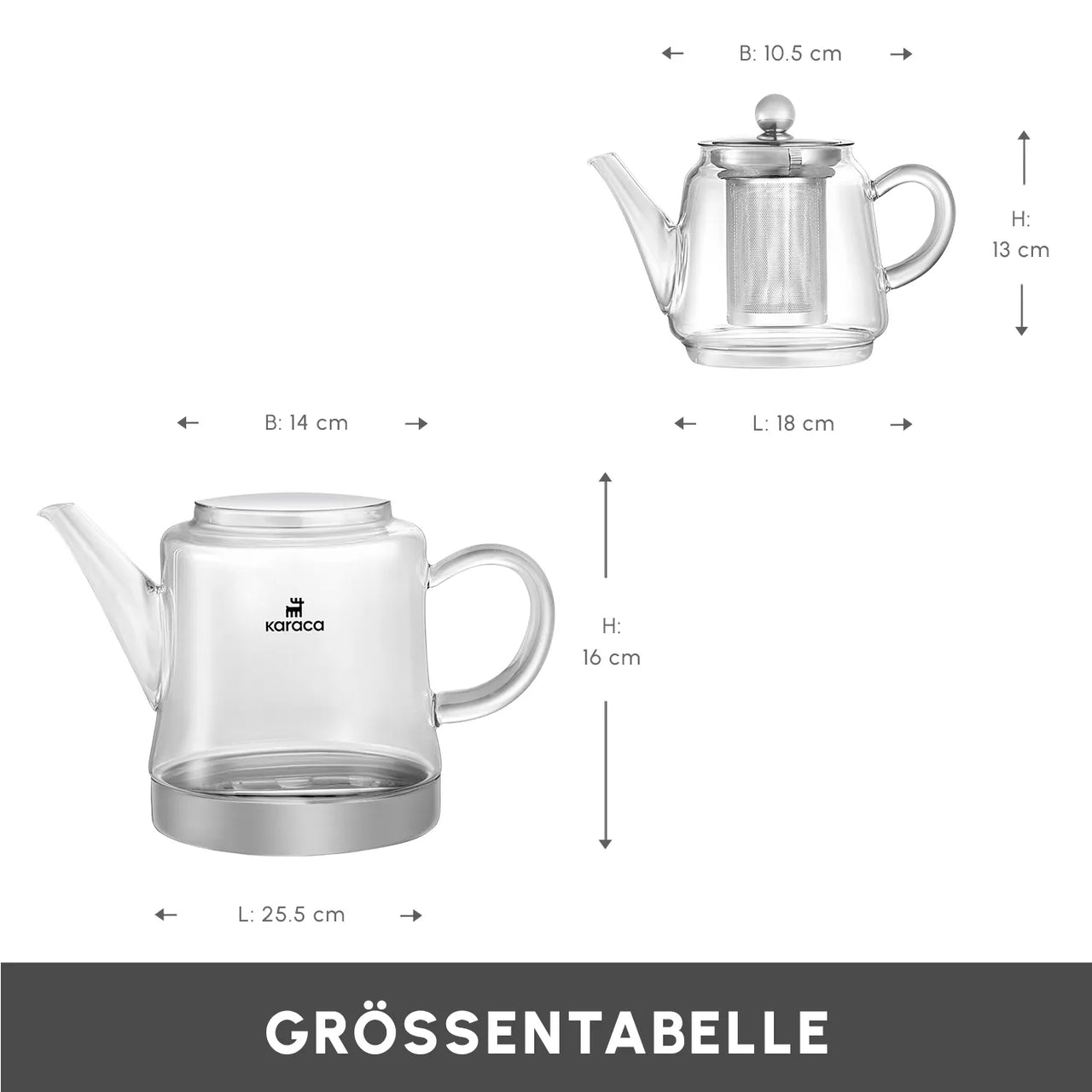 Die Karaca Dora Glas Teekanne bietet elegantes Design in hochwertigem Glas, ideal für die Zubereitung von Tee. Mit einem praktischen Ausguss und einem robusten Griff sorgt sie für einfachen Gebrauch und eine stilvolle Präsentation auf jedem Tisch. Diese Teekanne ist sowohl funktional als auch dekorativ und eignet sich hervorragend für Teeliebhaber, die auf Qualität und Ästhetik Wert legen.