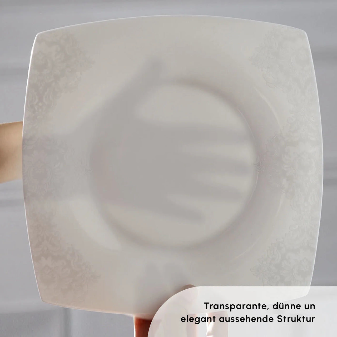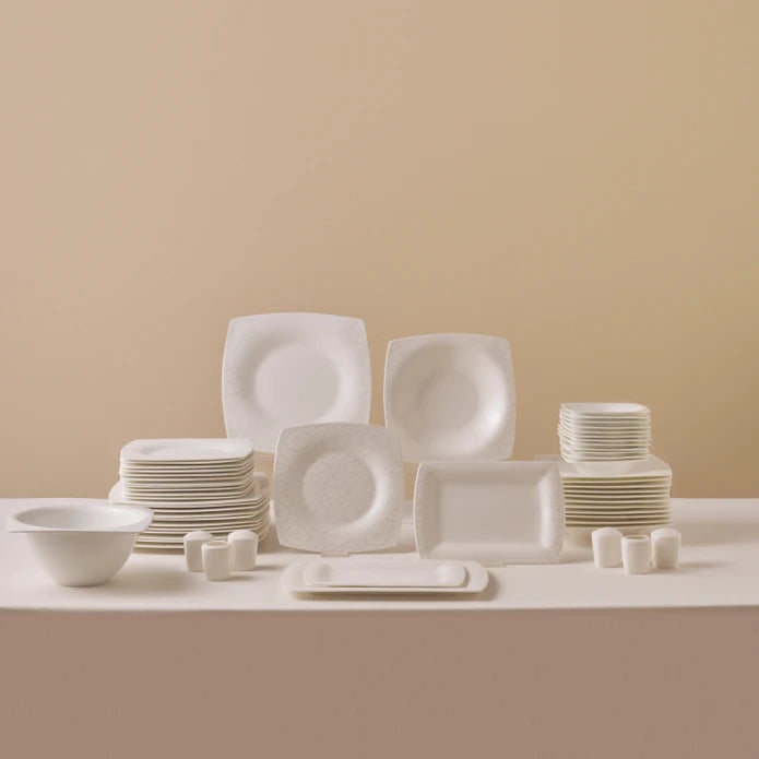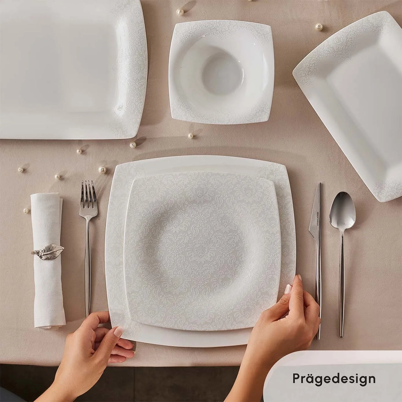 Karaca Fine Pearl Helen 58-teiliges Tafelservice für 12 Personen, eckig