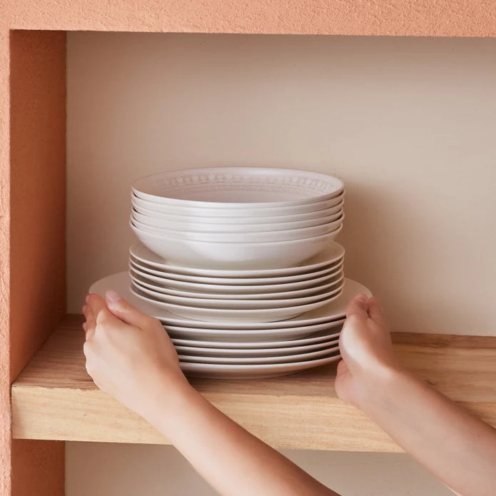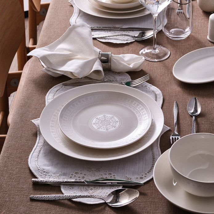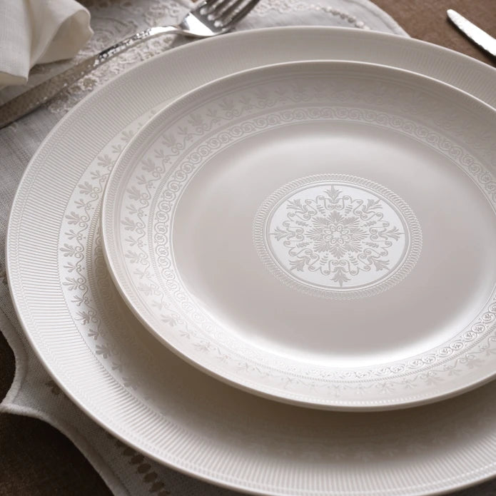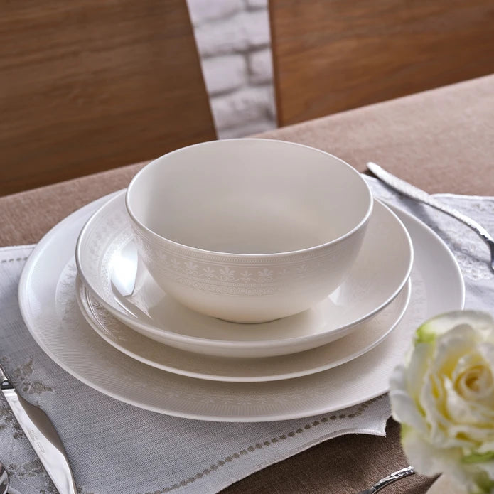 Das Forever Bone Artiste Geschirrset von Karaca kombiniert zeitlose Eleganz mit funktionalem Design. Gefertigt aus hochwertigem Bone China, besticht es durch seine feine Transparenz und außergewöhnliche Robustheit. Die klaren Linien und das schlichte Weiß verleihen jedem Tisch eine edle Note. Mit 53 Teilen bietet das Set alles, was Sie für ein stilvolles Dinner mit bis zu 12 Personen benötigen. Die runde Form und das moderne Design machen dieses Set zu einem Highlight für jede Tafel.