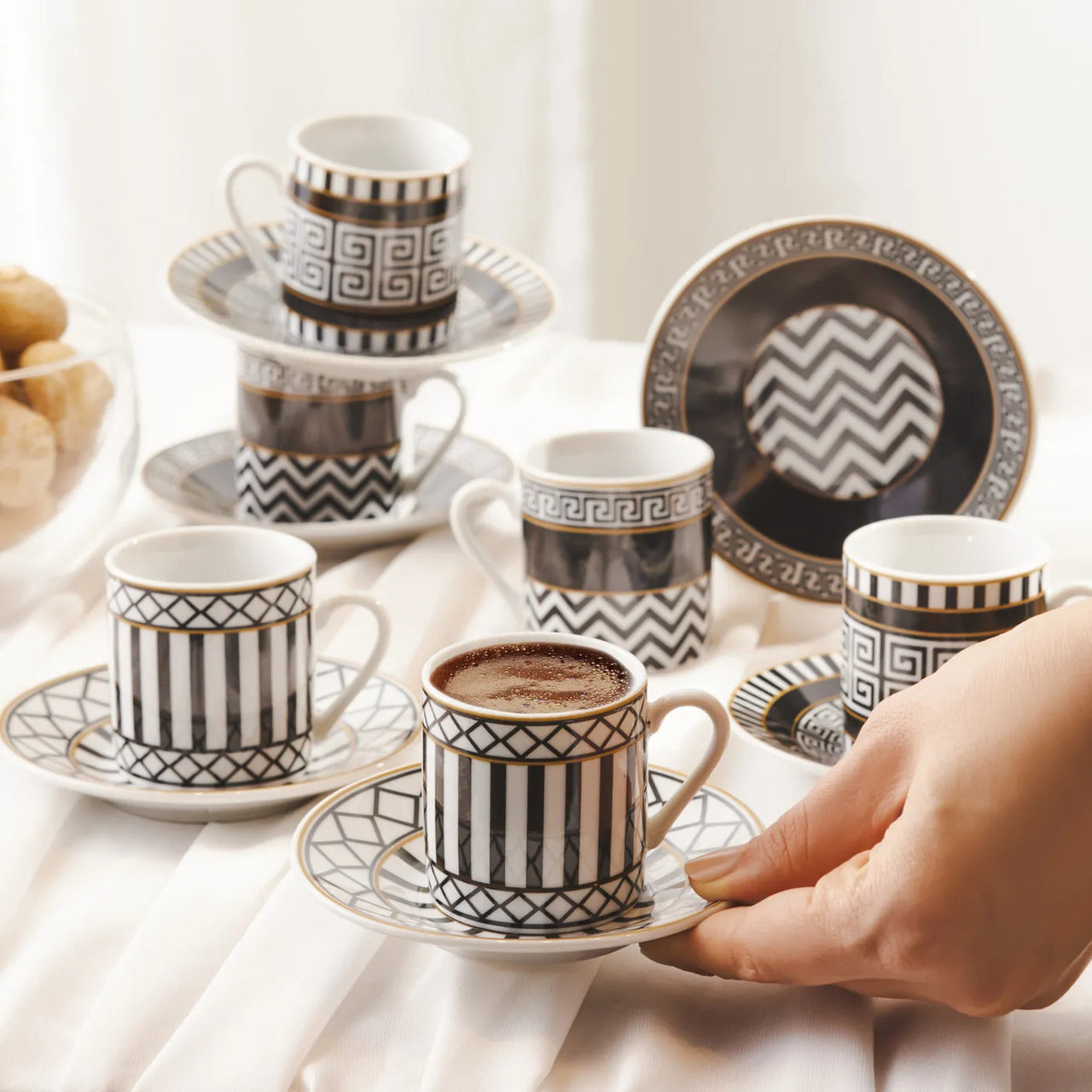 Das Karaca Helenistik Kaffeetassen Set ist ein elegantes und vielseitiges Porzellanset für Kaffeegenuss im Alltag und bei geselligen Treffen. Dieses 12-teilige Set für 6 Personen besteht aus 6 Kaffeetassen mit je 80 ml Fassungsvermögen und 6 passenden Untertassen – perfekt für türkischen Kaffee, Espresso oder andere Heissgetränke.