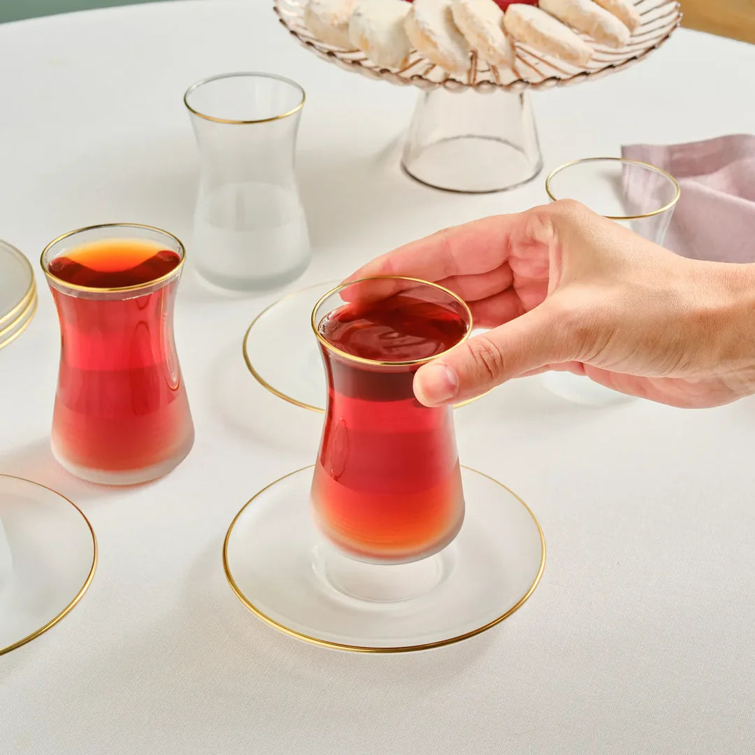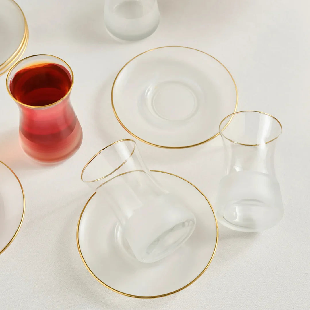 Das Jasmine Weiss Tee Set für 6 Personen vereint klassische Eleganz mit hochwertiger Verarbeitung. Dieses 12-teilige Set besteht aus 6 stilvollen Teegläsern und 6 passenden Untertassen, die mit ihrem zarten, weißen Design für eine edle Tischdekoration sorgen. Das zeitlose Muster und die harmonischen Formen machen dieses Set perfekt für den täglichen Genuss sowie besondere Anlässe. Ideal für alle, die Tee in stilvollem Ambiente genießen möchten.