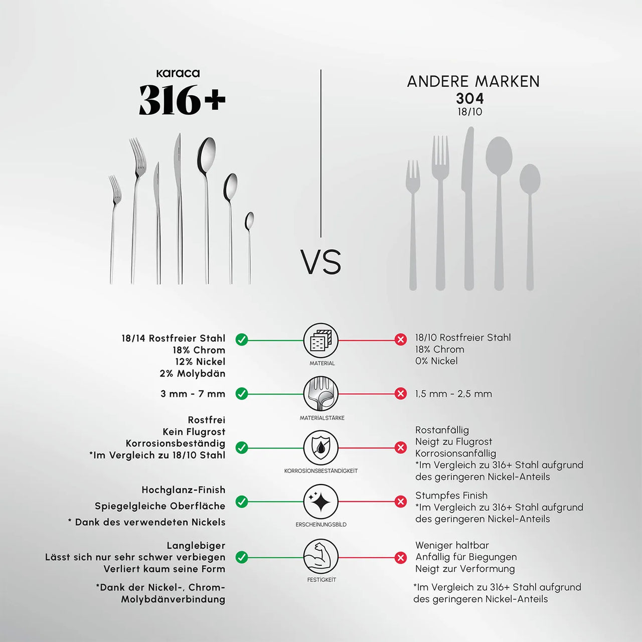 Material: 18/10 Edelstahl mit 316-Stahlanteil