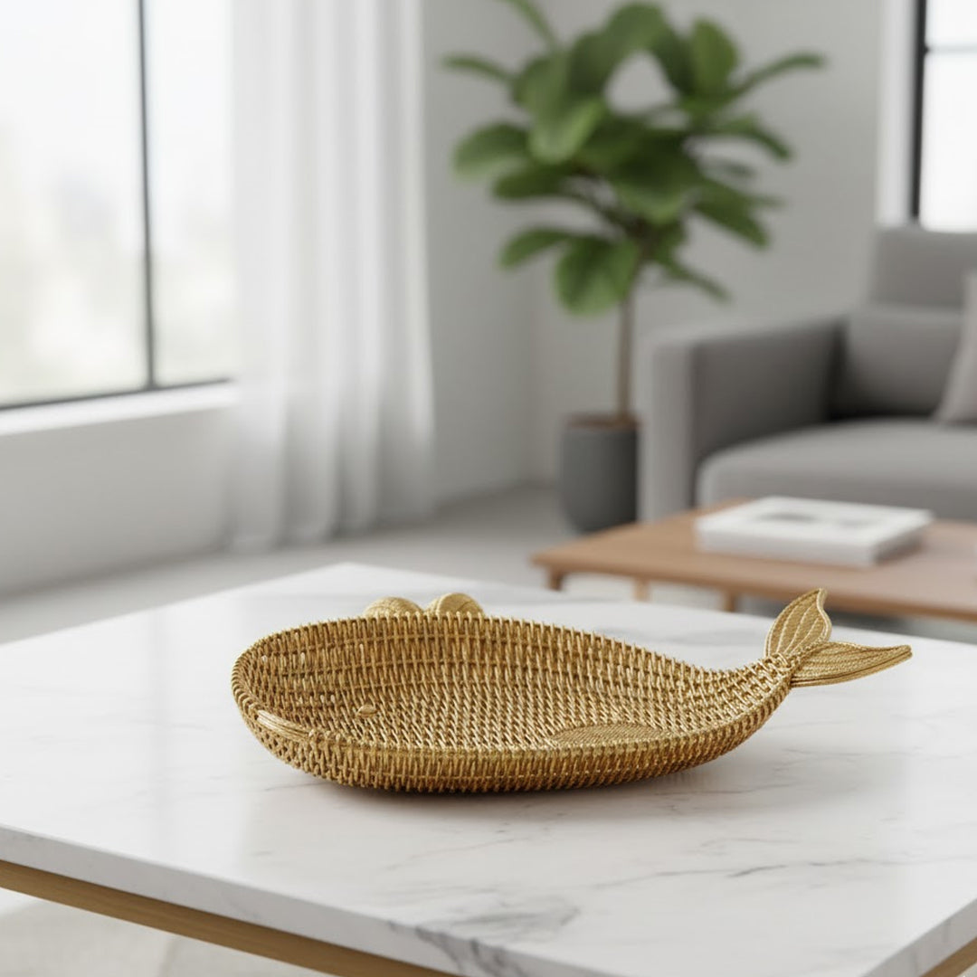 Der Karaca Nova Whale dekorative Teller beeindruckt durch sein einzigartiges Wal-Design, das sofort ins Auge fällt und jedem Raum eine maritime, moderne und stilvolle Atmosphäre verleiht.