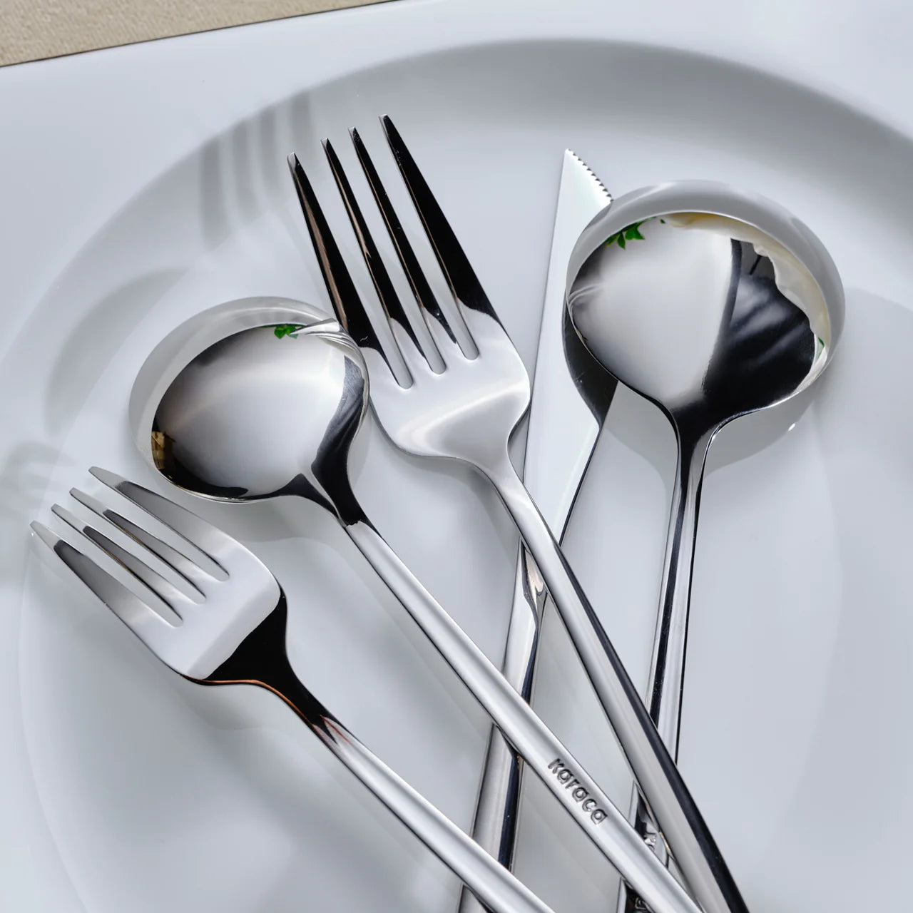Das Orion Besteckset von Karaca vereint zeitloses Design mit hoher Funktionalität und ist ideal für stilvolle Tischgedecke. Gefertigt aus hochwertigem Edelstahl, besticht es durch seine glänzende Oberfläche und Langlebigkeit. Die ergonomisch geformten Griffe sorgen für angenehmen Komfort, während die polierte Oberfläche für einen eleganten Glanz sorgt. Mit 84 Teilen bietet das Set alles, was Sie für ein vollständiges Gedeck für 12 Personen benötigen.