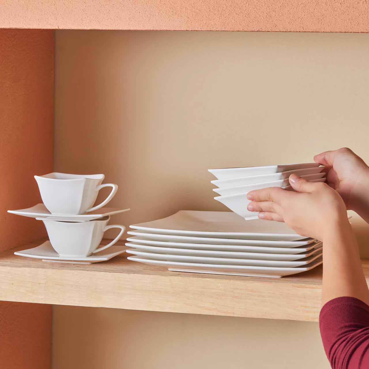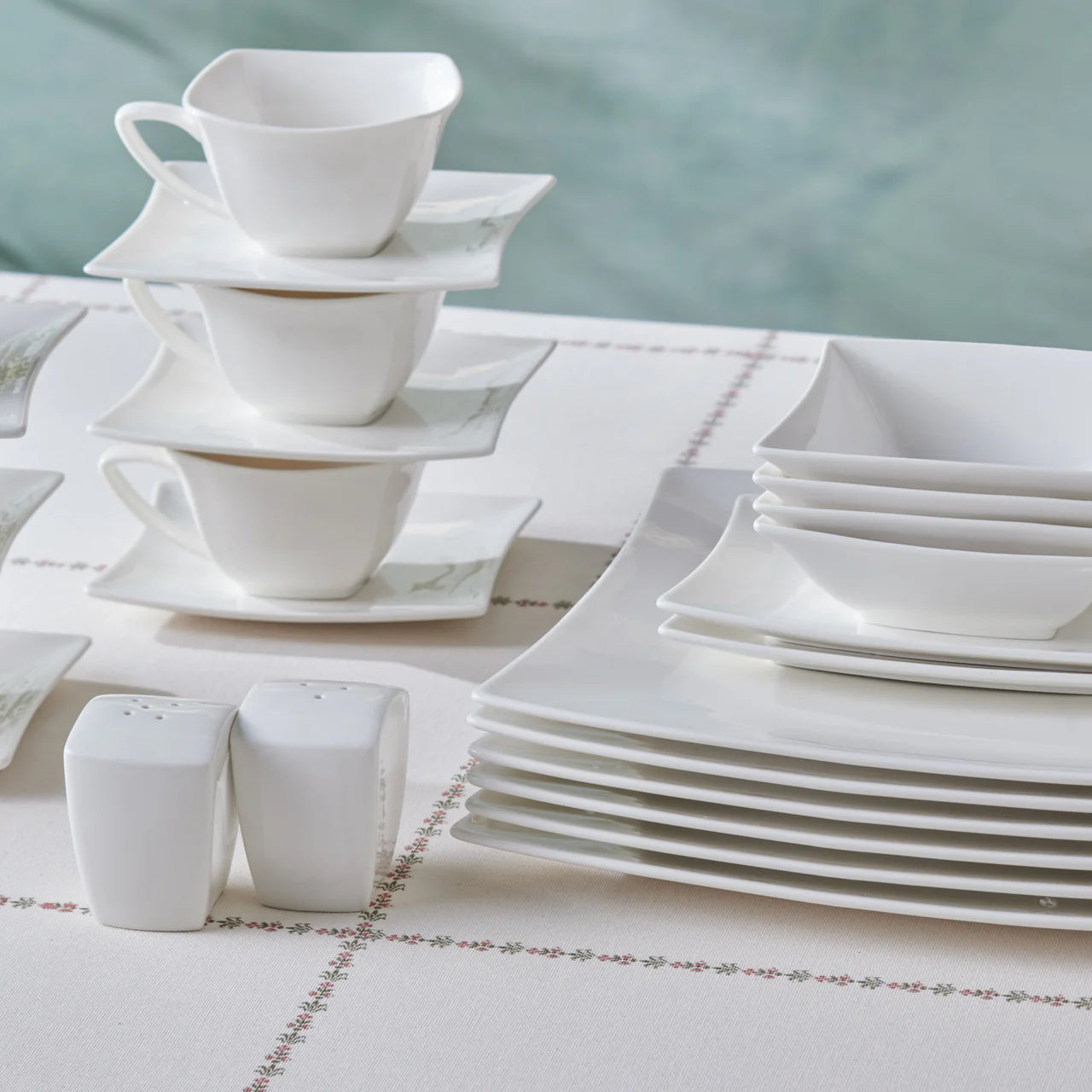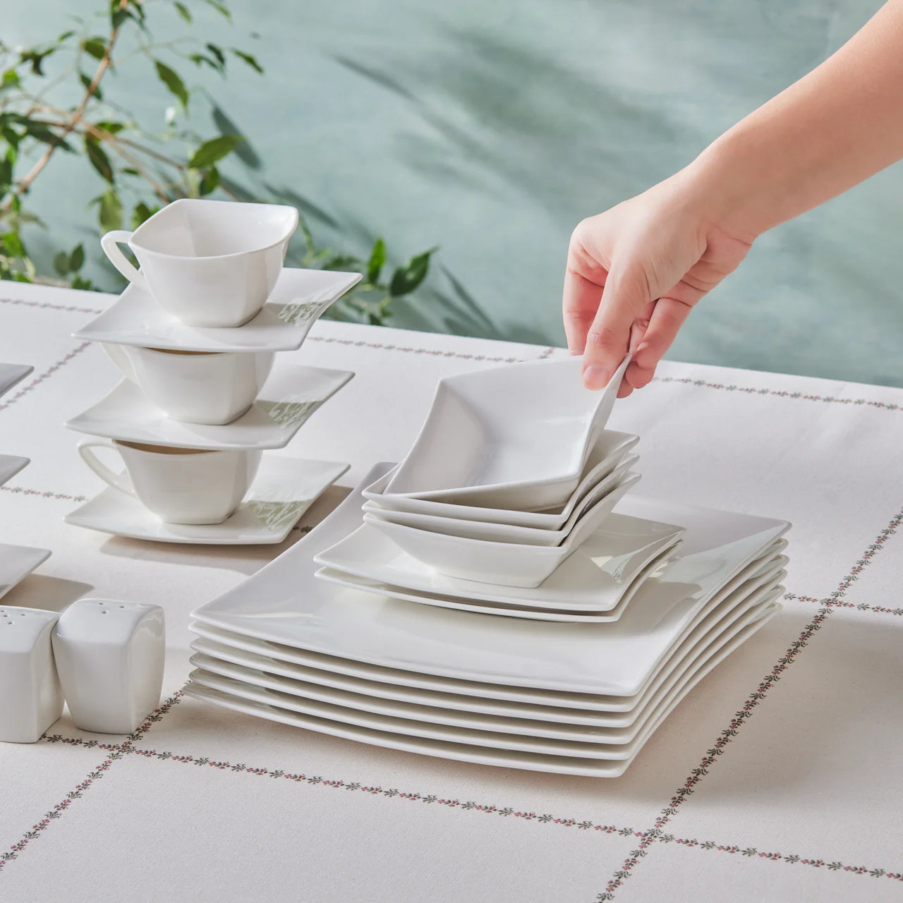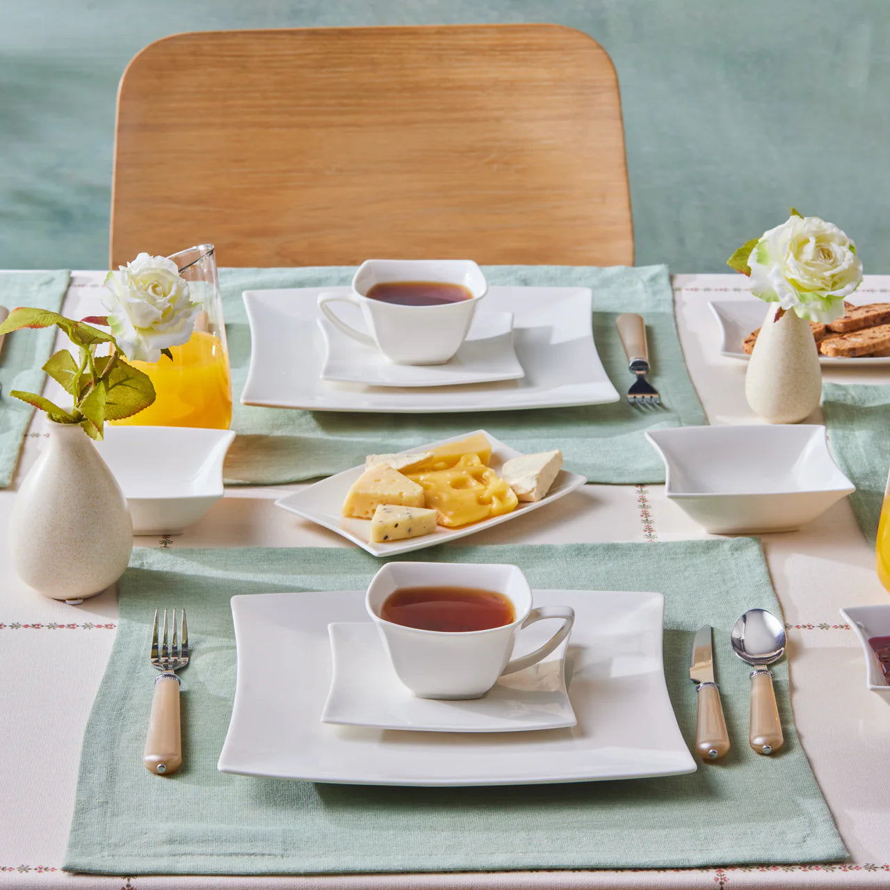 32-teiliges Set aus weissem Premium-Porzellan Perfekt für 6 Personen geeignet Modernes, minimalistisches Design Spülmaschinen- und mikrowellengeeignet