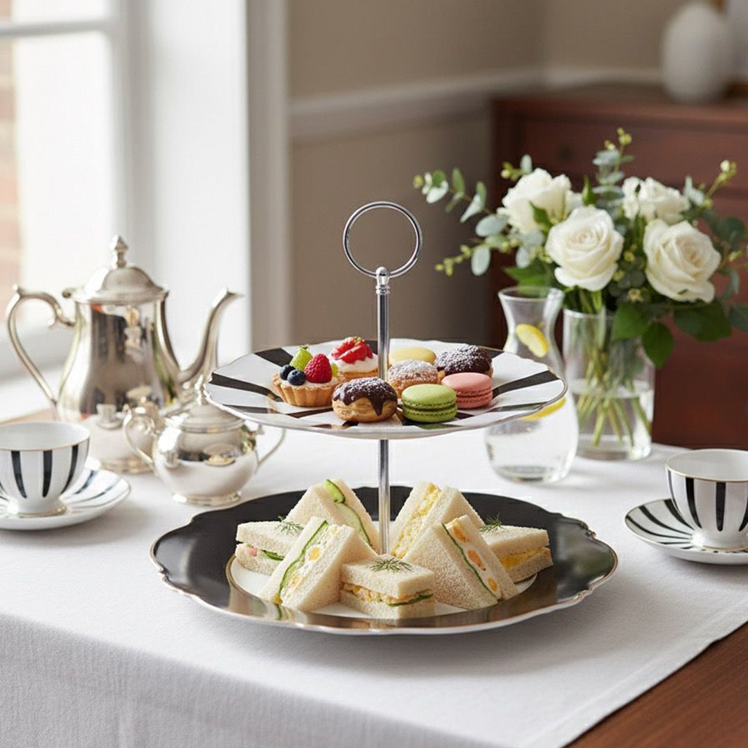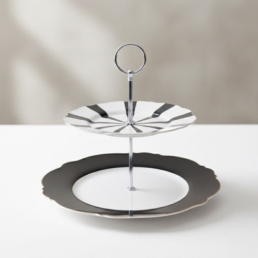 Karaca Romantische Schwarz Gestreifte Tiered Cookie Halter