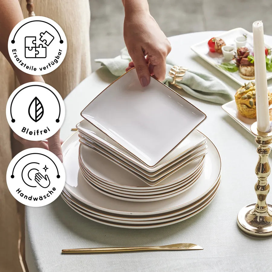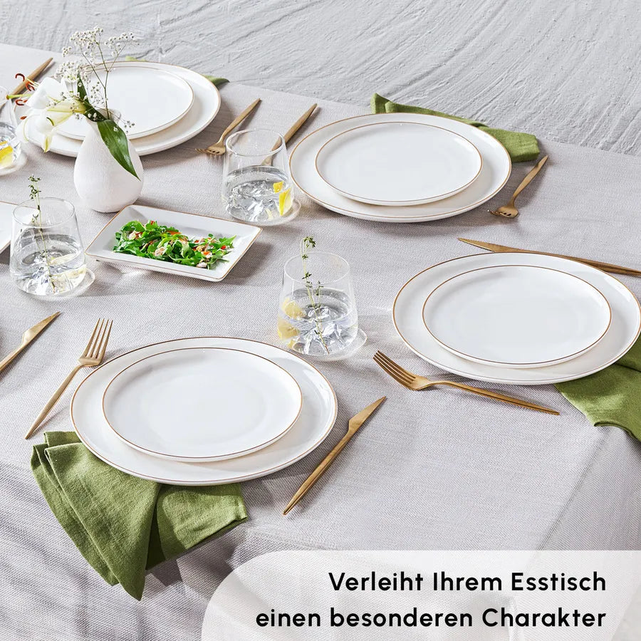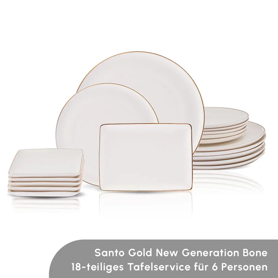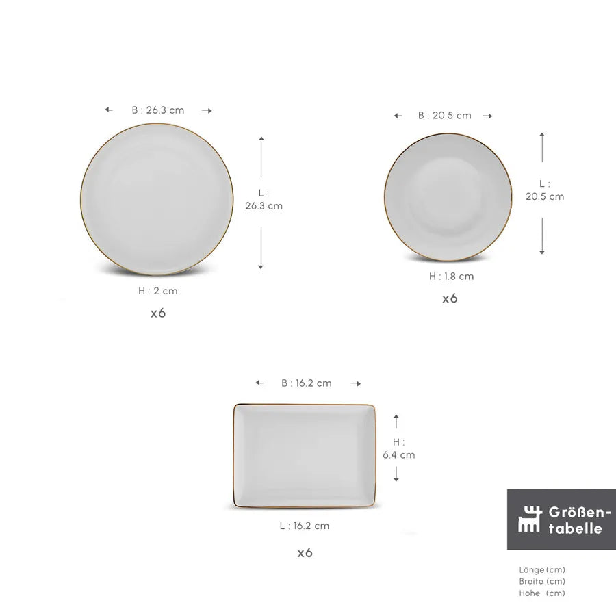 Eleganz trifft Funktionalität – das 18-teilige Karaca Santo Geschirrset für 6 Personen verleiht jeder Tafel eine luxuriöse Note. Hergestellt aus New Generation Bone, vereint es Leichtigkeit, Widerstandsfähigkeit und stilvolles Design in edlem Weiss mit Goldakzenten. Ideal für den täglichen Gebrauch oder besondere Anlässe.