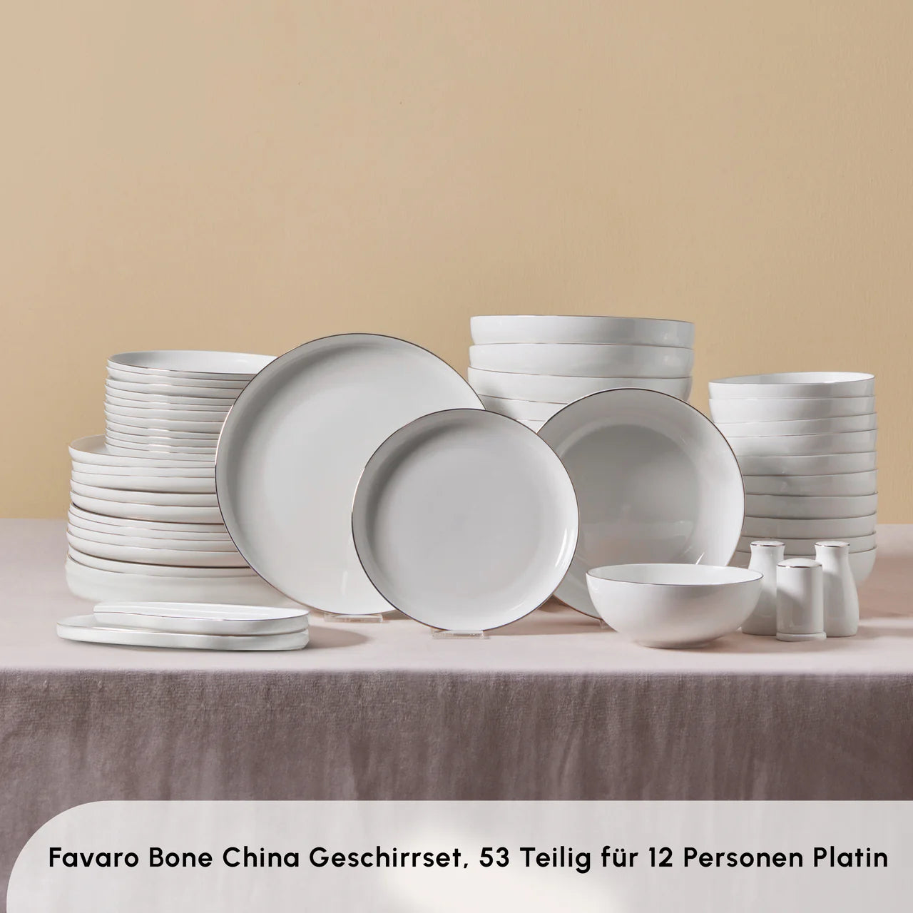 Das Favaro Streamline Geschirrset vereint modernes Design mit hochwertiger Verarbeitung und bietet eine stilvolle Ausstattung für 12 Personen. Hergestellt aus New Generation Bone, zeichnet sich dieses Set durch seine elegante Platinverzierung und Langlebigkeit aus. Ideal für besondere Anlässe und den täglichen Gebrauch, verleiht es jedem Tisch eine edle Note.
