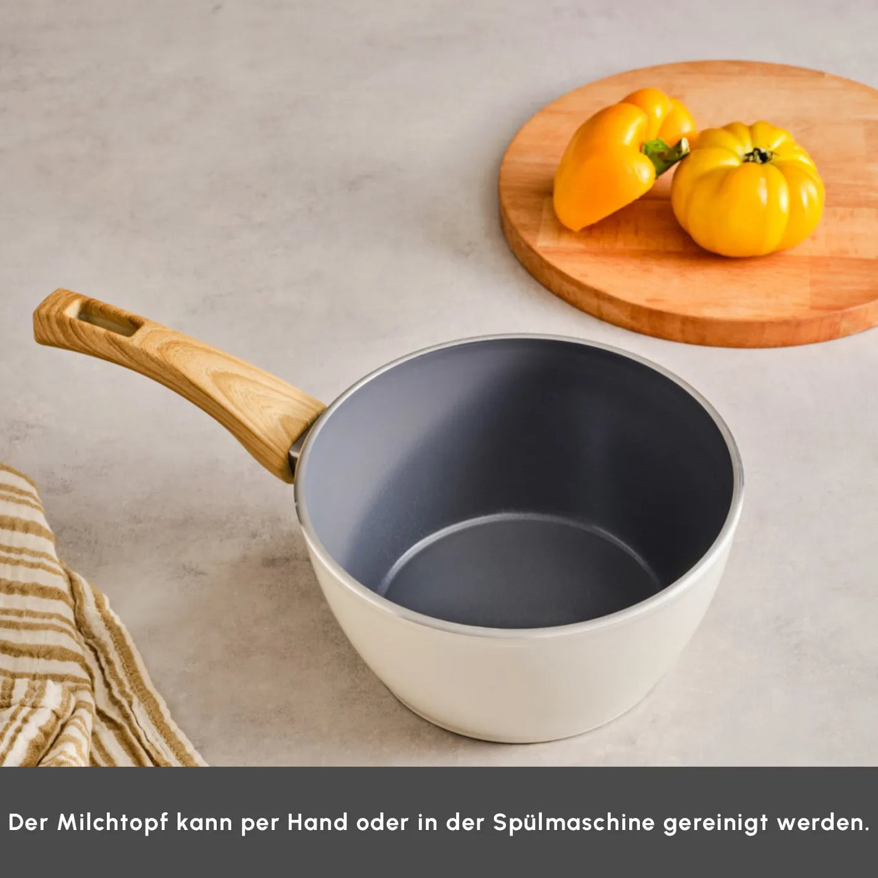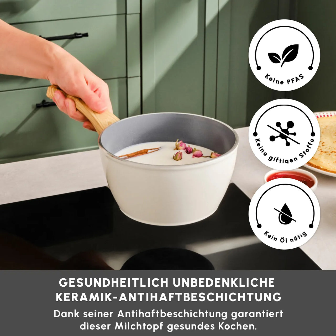 Dank der innovativen Beschichtung ist das Kännchen PFAS-frei, extrem kratzfest und leicht zu reinigen – nach der Nutzung genügt ein kurzes Eintauchen in Wasser.