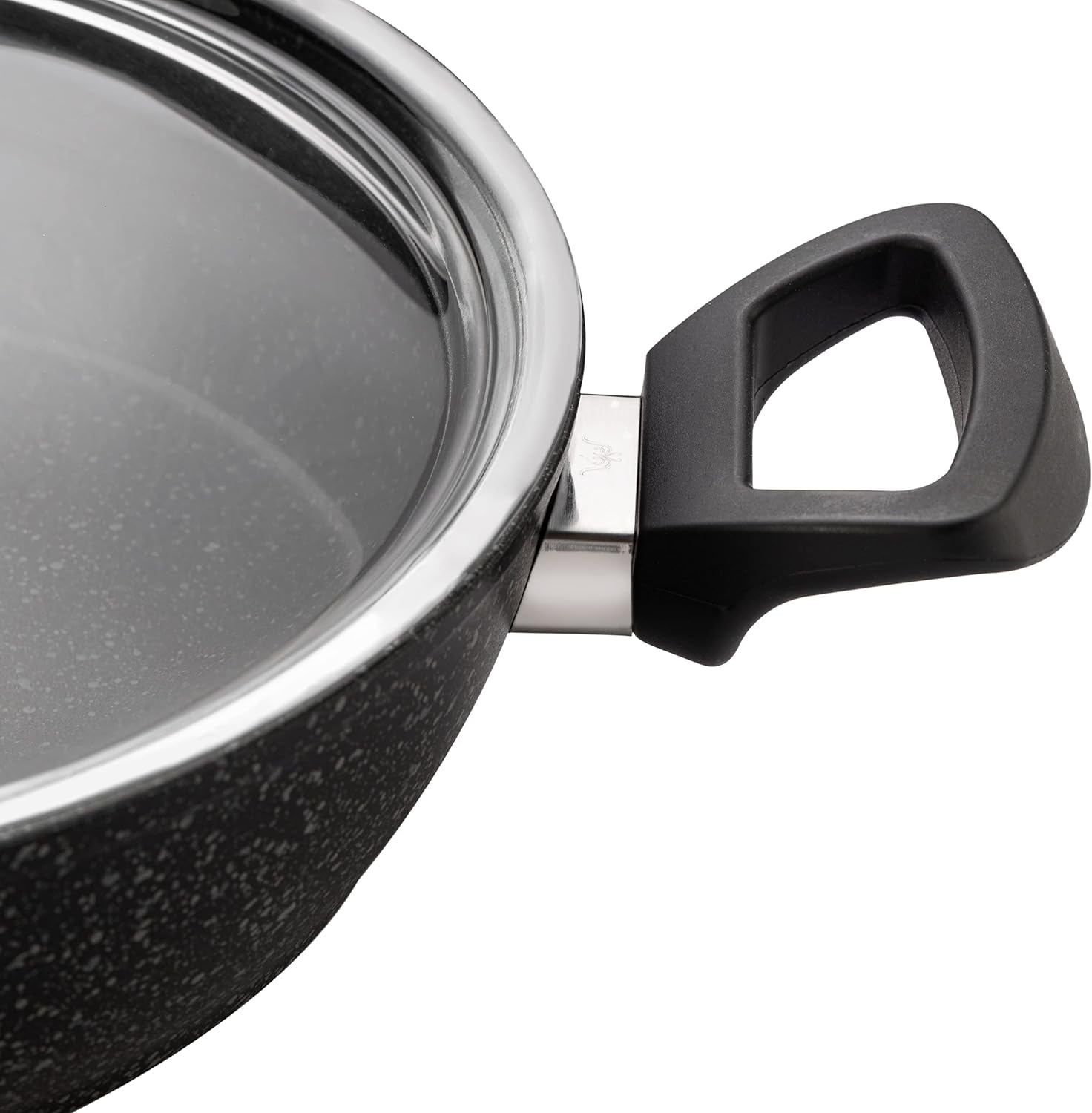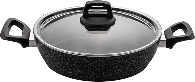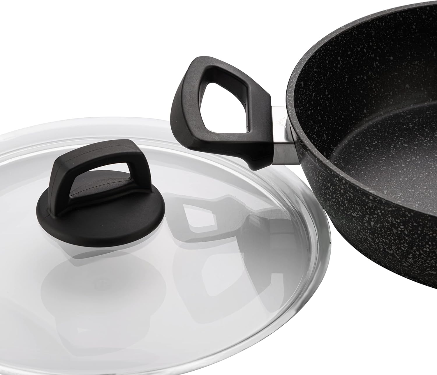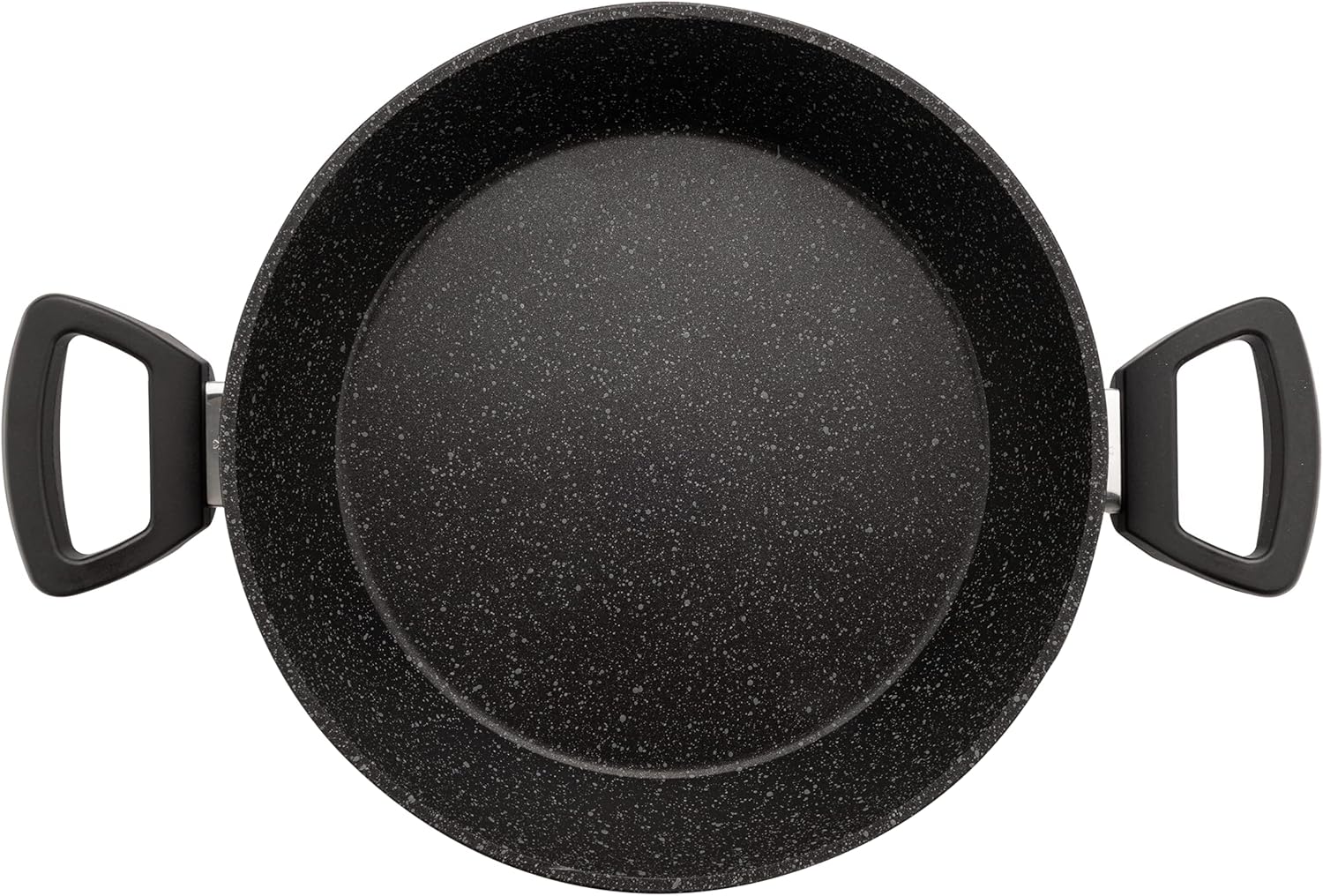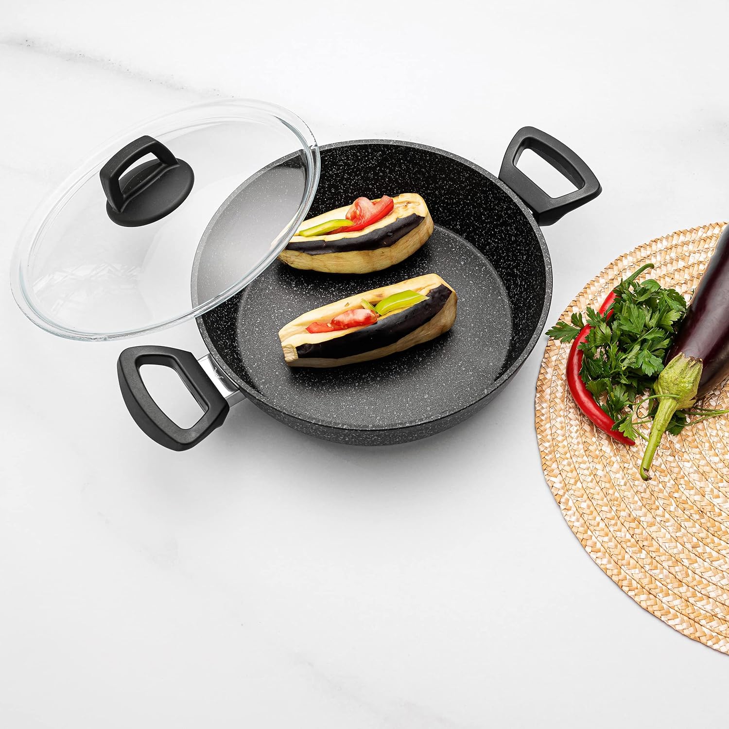 Die robuste Bio-Granit-Oberfläche sorgt für eine zuverlässige Wärmeverteilung und erleichtert das Kochen im Alltag. Lebensmittel haften weniger an, was sowohl das Kochen als auch das Servieren angenehmer macht.