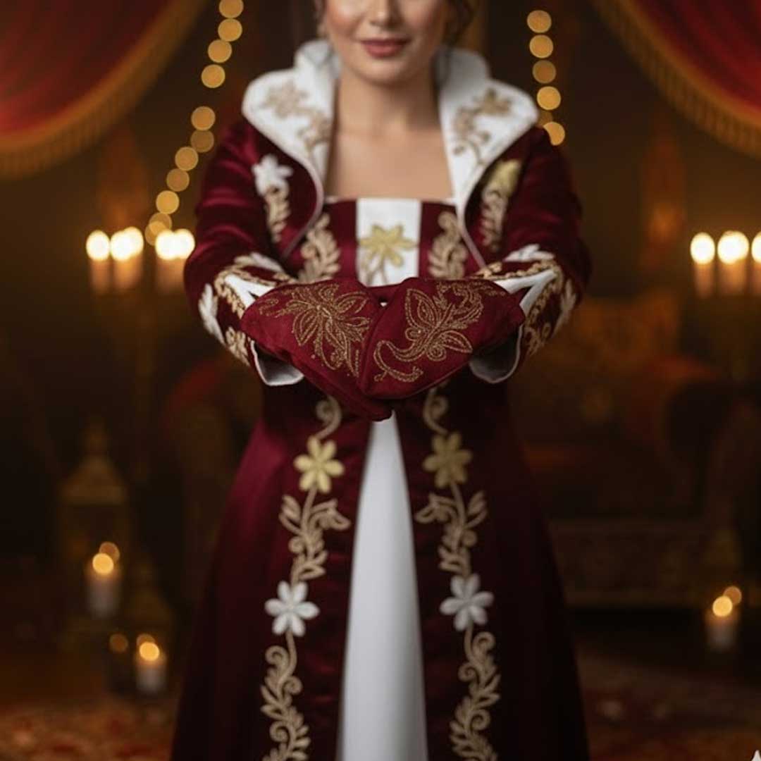 Diese traditionellen Handschuhe kombinieren Eleganz, Symbolik und Tradition – ein stilvolles Detail für jeden Henna-Abend.