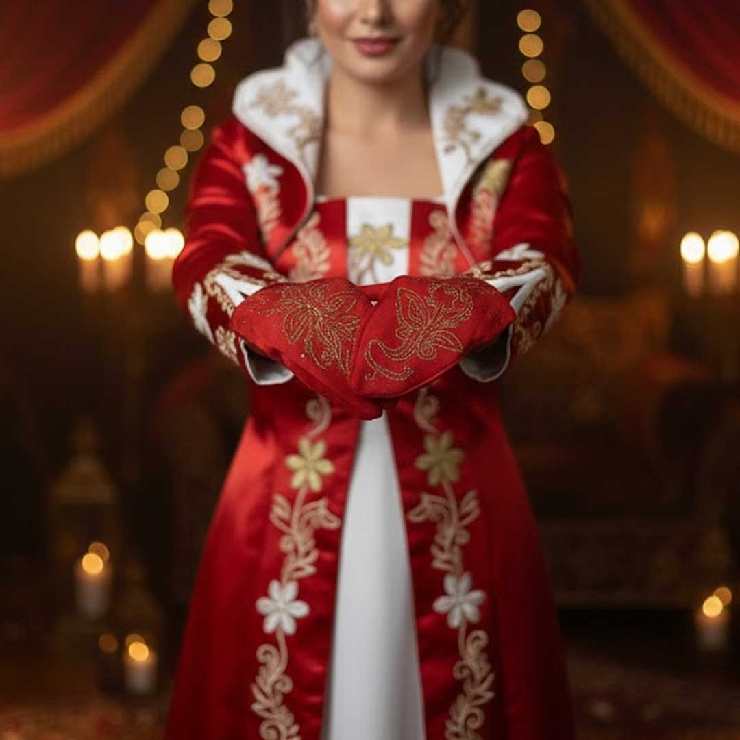Diese traditionellen Handschuhe kombinieren Eleganz, Symbolik und Tradition – ein stilvolles Detail für jeden Henna-Abend.