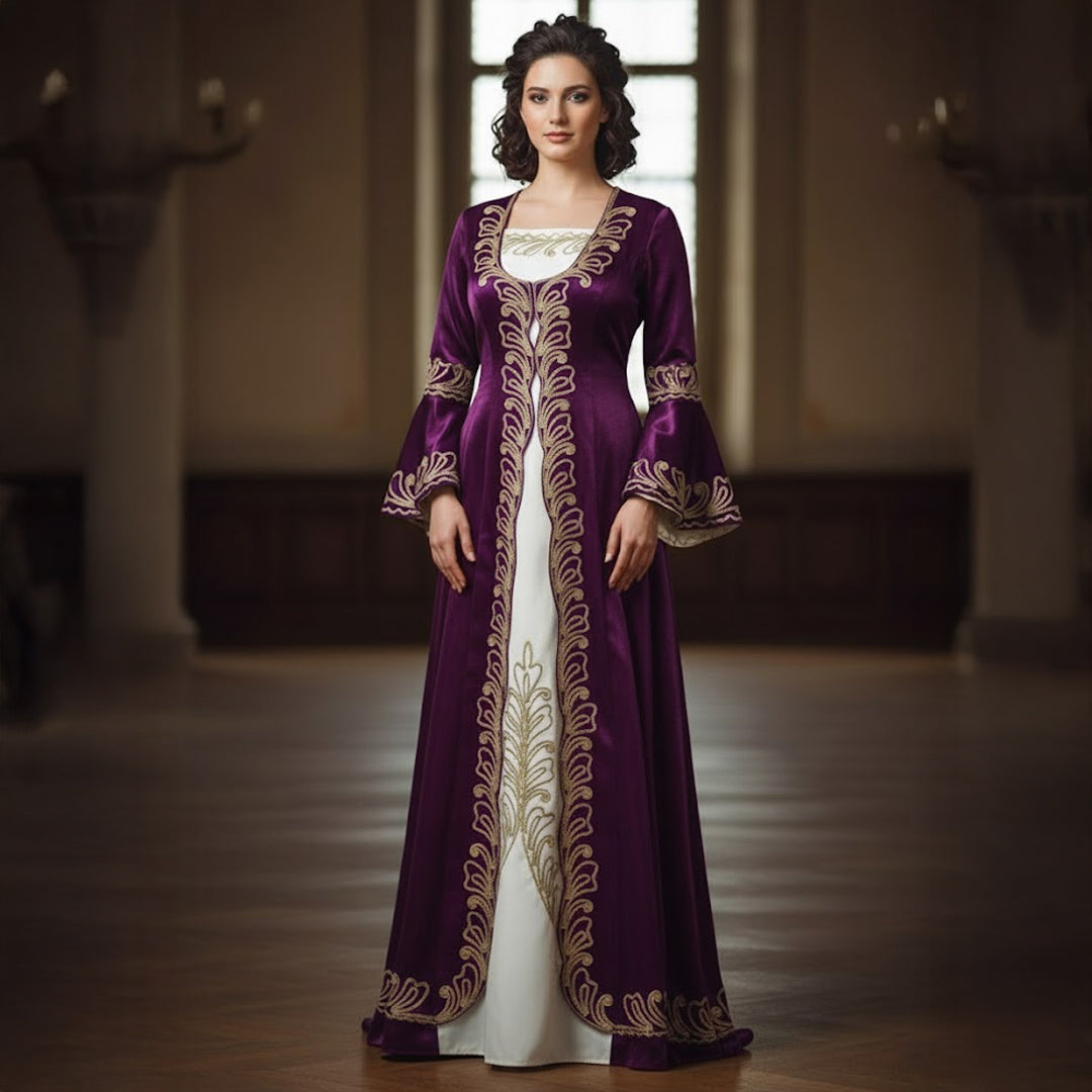 Farbe: Dunkelviolettt mit cremefarbenem Einsatz und goldener Stickerei