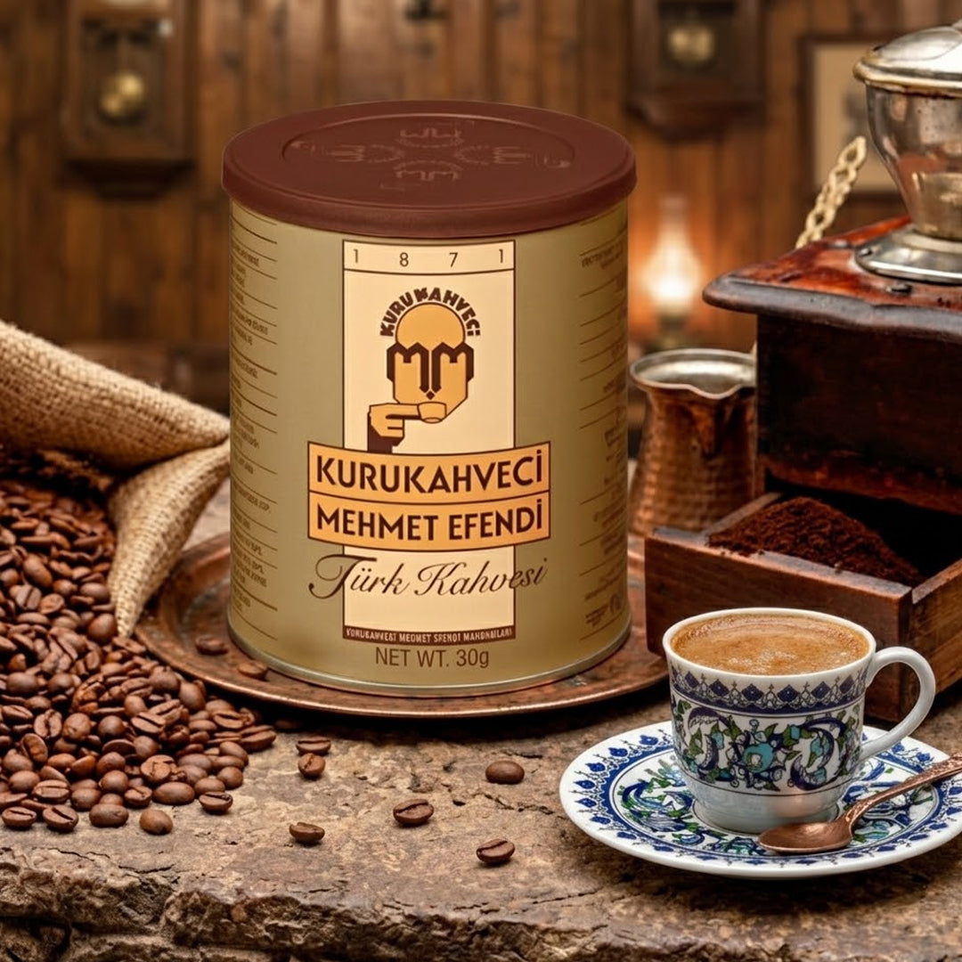 Türkischer Mokka Kaffee von Kurukahveci Mehmet Efendi – seit 1871 ein Symbol fuer echten Kaffeegenuss. Dieser fein gemahlene Kaffee wird aus sorgfältig ausgewaehlten 100% Arabica-Bohnen hergestellt und bietet ein intensives, ausgewogenes Aroma.