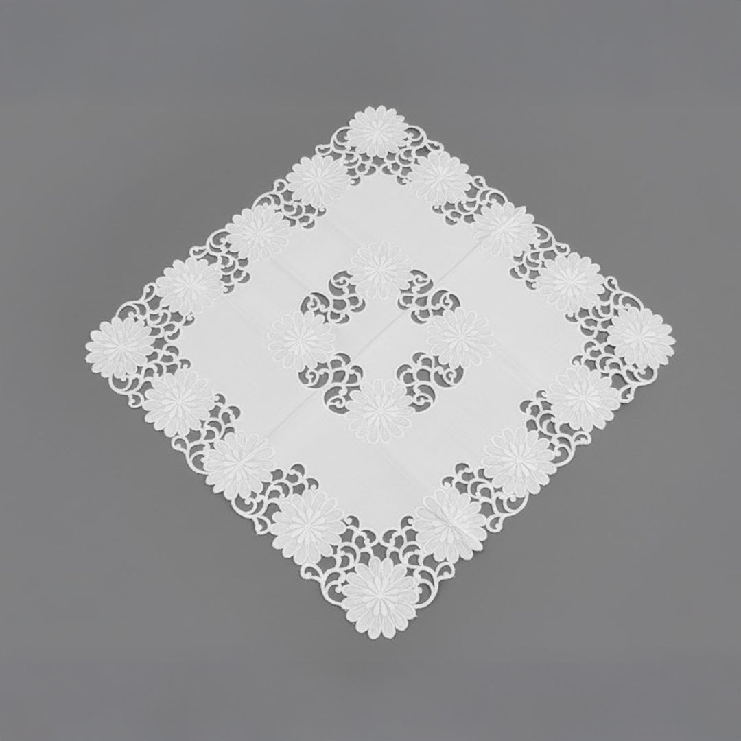 Die „Lace Elegance“ Tischdecke in elegantem Cream-Ton und feiner Spitzen-Optik verleiht jedem Tisch eine stilvolle und zeitlos klassische Atmosphäre. Durch ihr dezentes Spitzenmuster wirkt sie edel und passt perfekt zu besonderen Anlässen wie Hochzeiten, Feiern, Festtagen oder einfach zur Aufwertung Ihres Esstisches im Alltag.