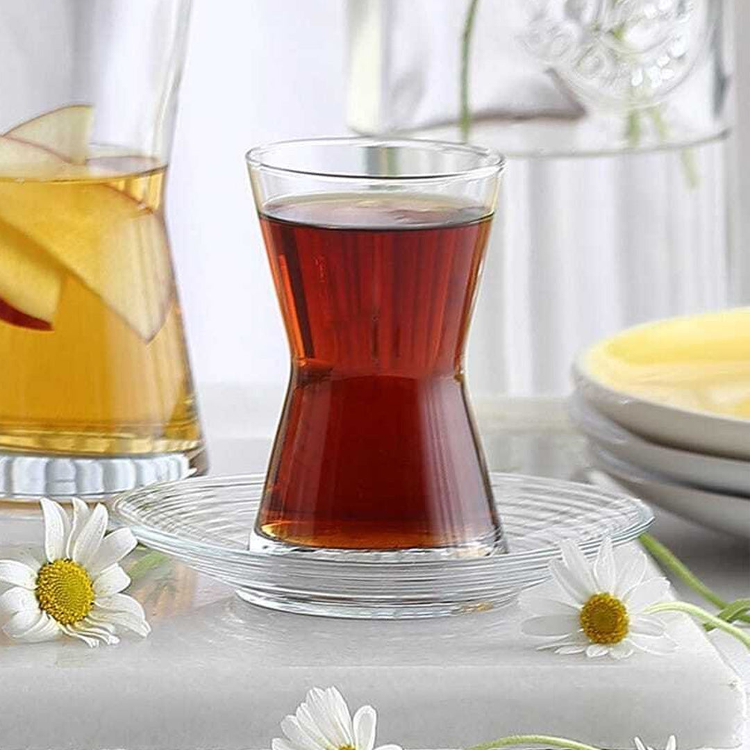 Das Teeglas Set besteht aus sechs gleich grossen und hochwertigen Gläsern. Jedes Glas verfügt über eine Kapazität von 140 ml und ist somit ideal für den täglichen Gebrauch. Die Gläser sind aus temperaturbeständigem und bruchsicherem Material hergestellt, so dass Sie sich voll und ganz auf Ihren Tee konzentrieren können.