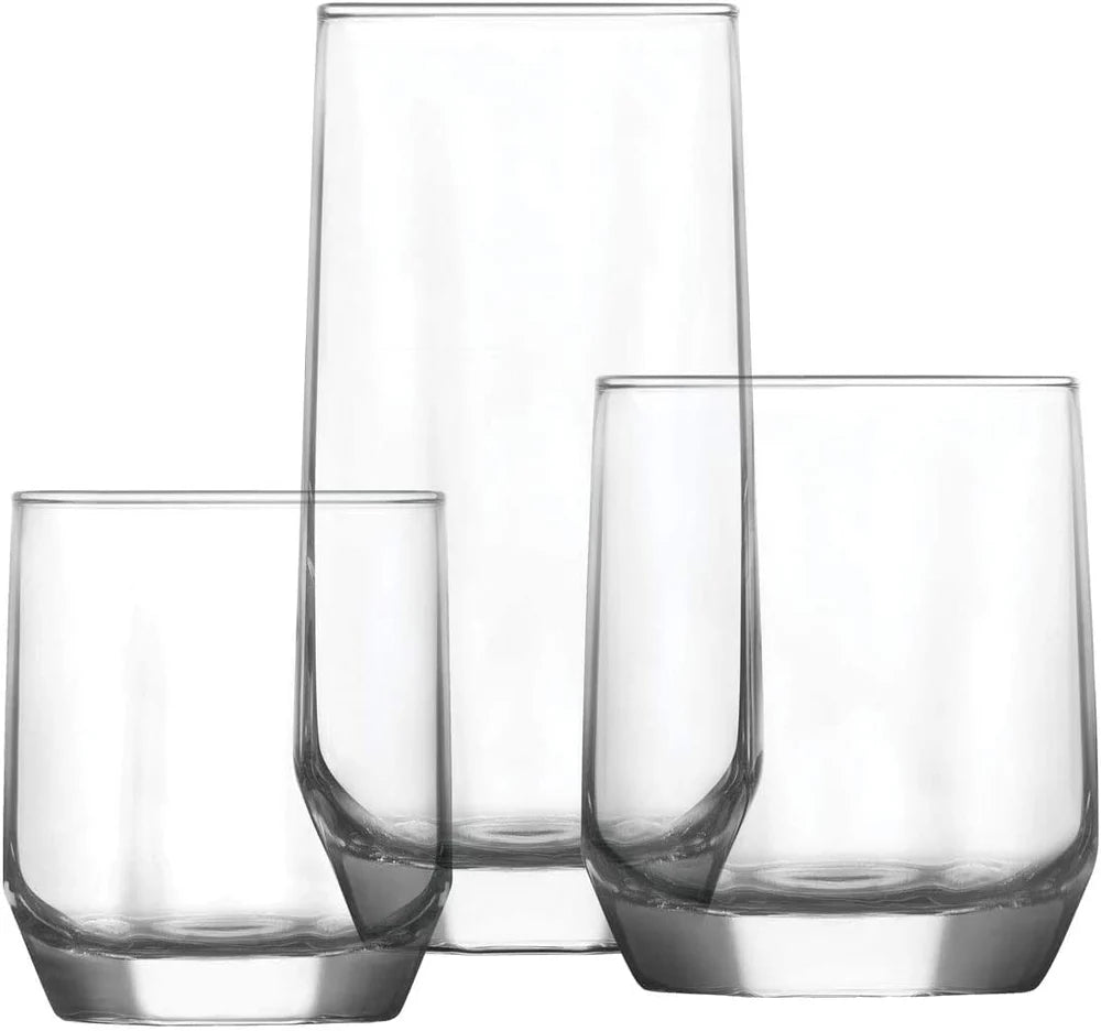 Set-Inhalt: 6 Wassergläser (215 ml), 6 Whiskygläser (310 ml), 6 Softdrinkgläser (385 ml)